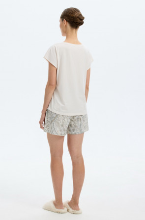 Комплект из высококачественного гребенного хлопка. Футболка имеет фигурный низ и цельнокроеный удобный рукав, а мягкий пояс шорт обеспечивает комфорт во время сна и отдыха.