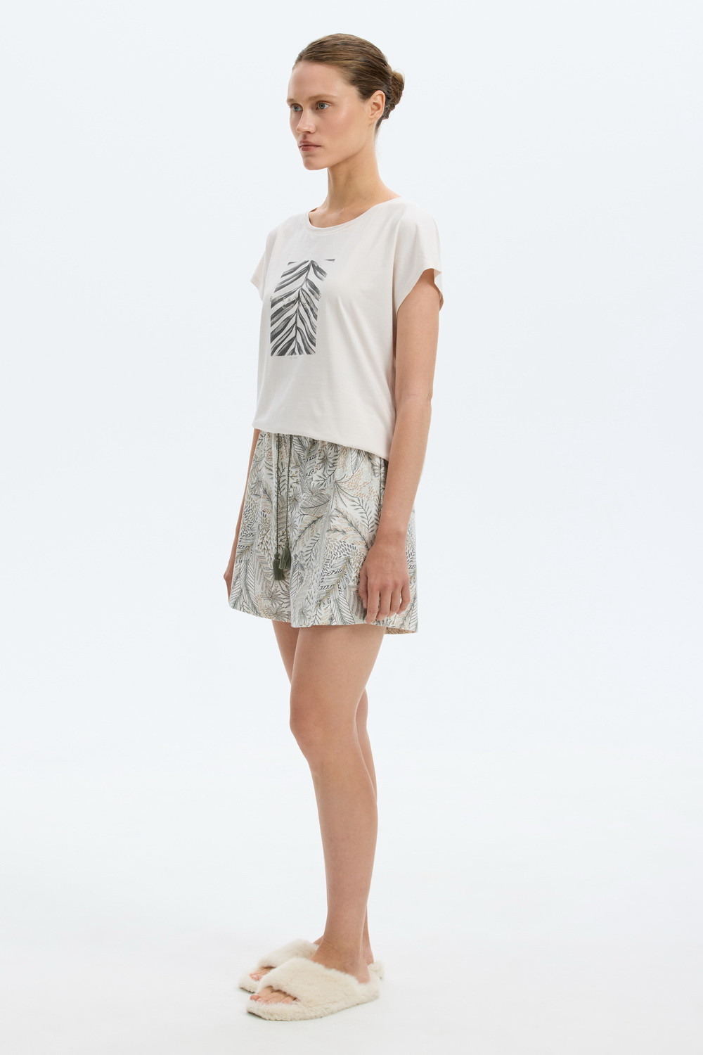 Комплект из высококачественного гребенного хлопка. Футболка имеет фигурный низ и цельнокроеный удобный рукав, а мягкий пояс шорт обеспечивает комфорт во время сна и отдыха.