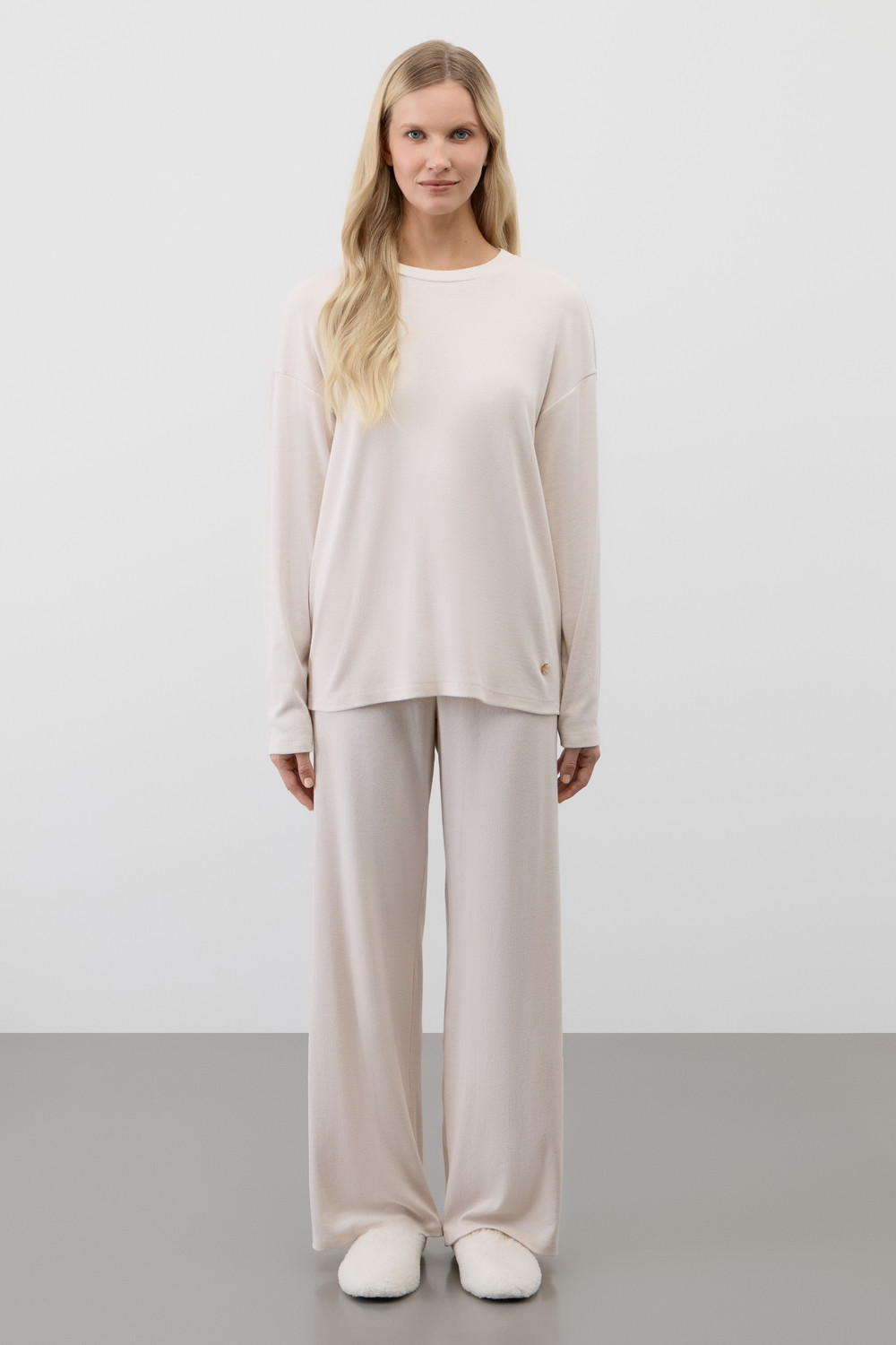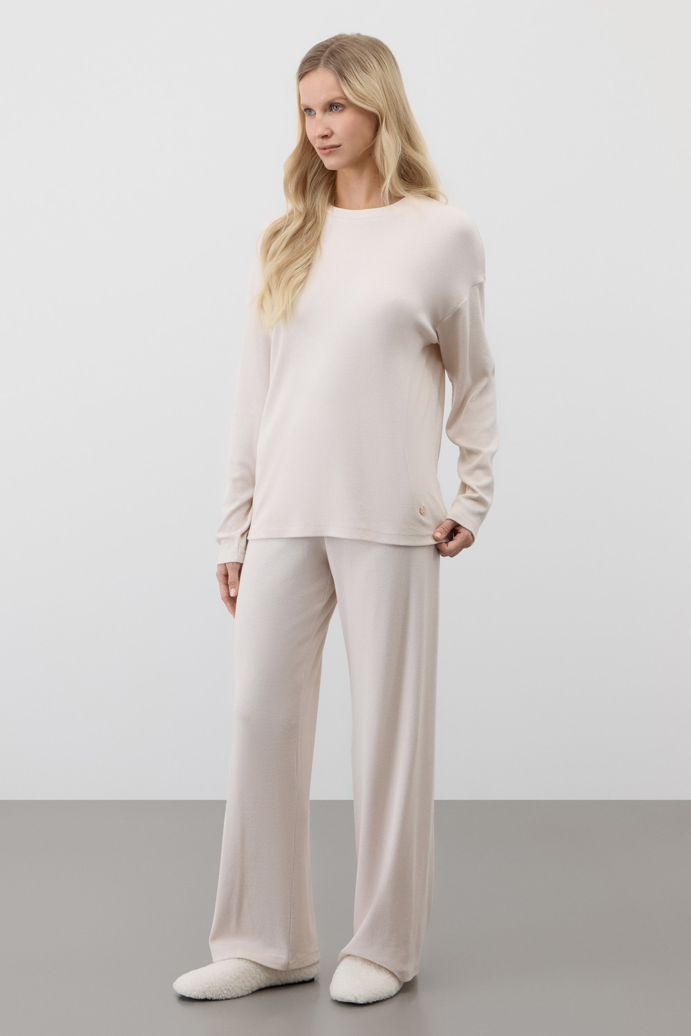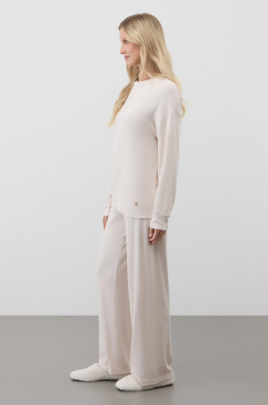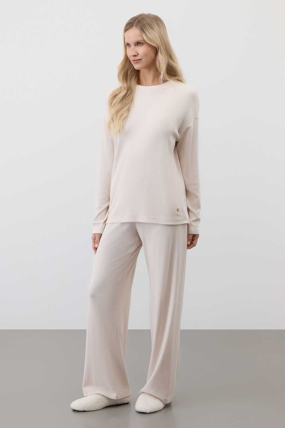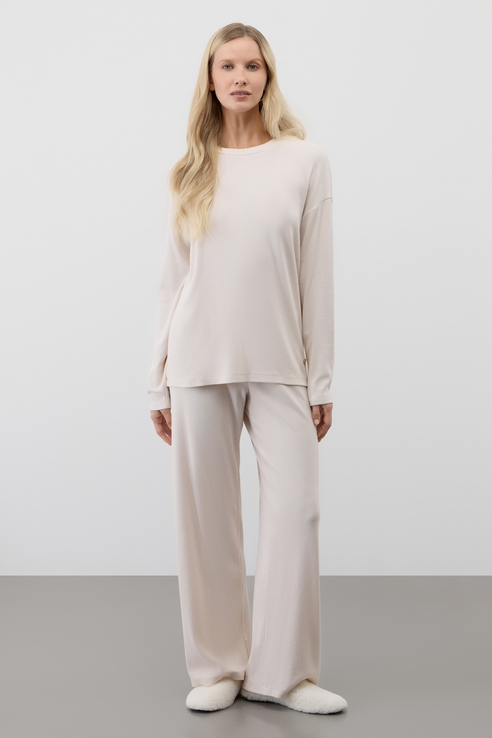 Лонгслив из мягкого эластичного трикотажа в рубчик и брюки из высококачественного гребенного хлопка - это идеальное сочетание уютного комфорта.