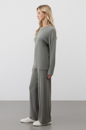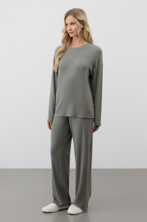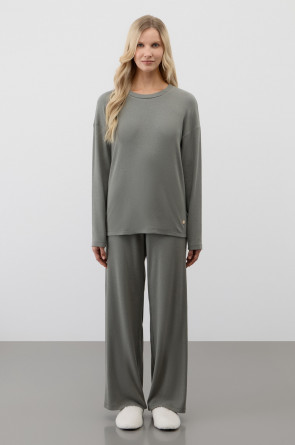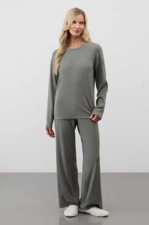 Лонгслив из мягкого эластичного трикотажа в рубчик и брюки из высококачественного гребенного хлопка - это идеальное сочетание уютного комфорта.