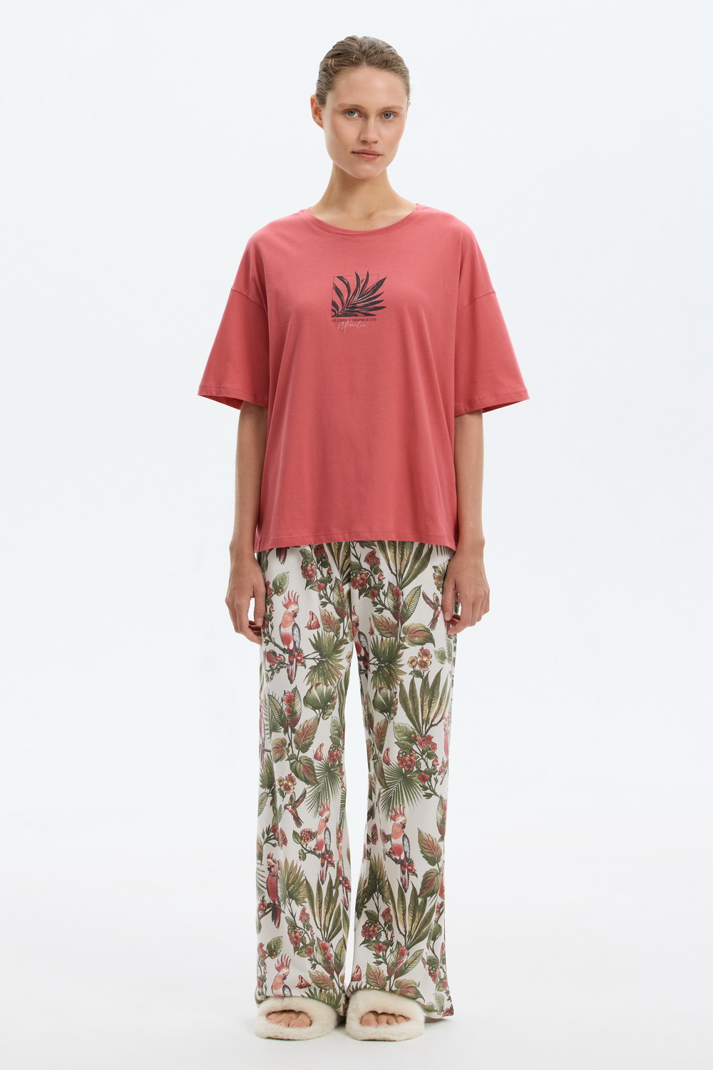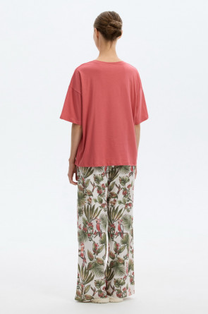 Комплект из высококачественного гребенного хлопка. Широкие брюки с удобным поясом на резинке и практичными карманами добавляют практичности и удобства.
