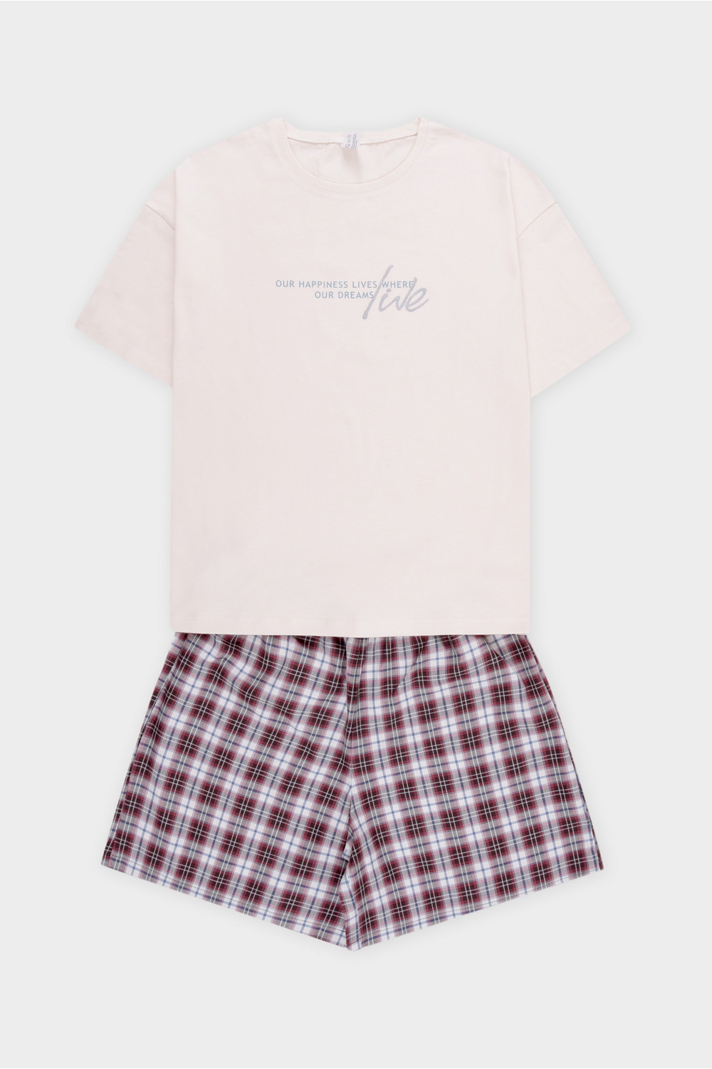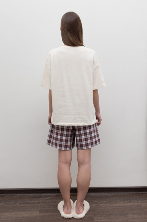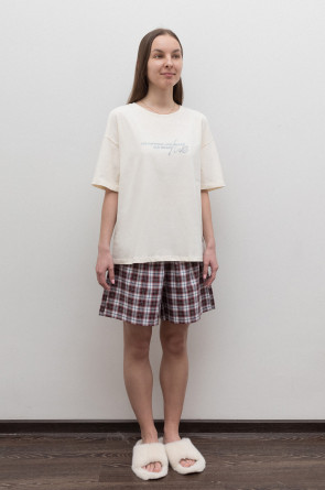 Комплект для комфортного сна и отдыха из трикотажного полотна. Футболка с короткими рукавами и спущенной линией плеча комфортно садится по фигуре. Шорты с мягким поясом на резинке. Свободный силуэт не сковывает движения.