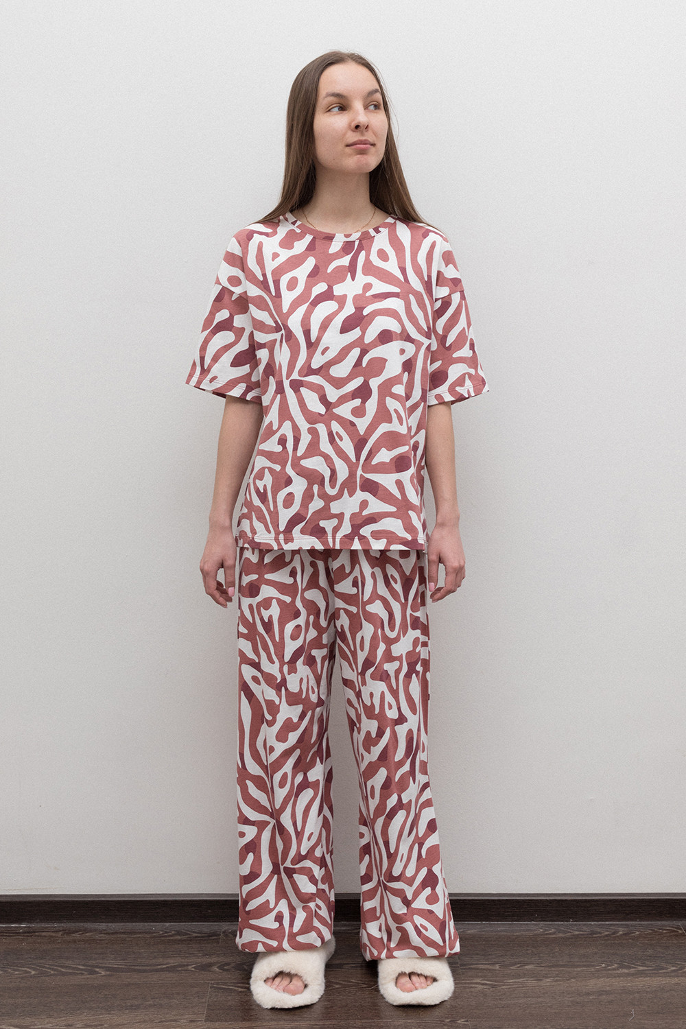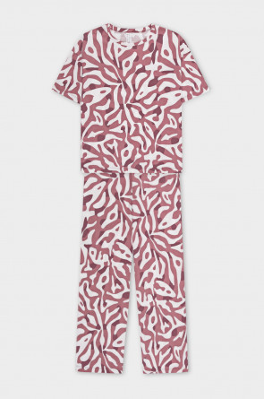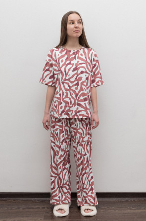 Комплект из высококачественного гребенного хлопка. Свободный крой футболки и мягкий пояс на брюках обеспечивают легкость и свободу движений. Оригинальные набивки выполнены из стойких, гипоаллергенных текстильных красителей. Изделие сохраняет цвет и форму после многократных стирок. Все трикотажные полотна производятся в соответствии с нормами Швейцарского сертификата ЭкоТекс.