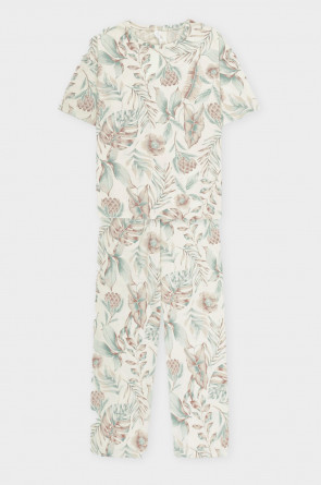 Комплект из высококачественного гребенного хлопка. Свободный крой футболки и мягкий пояс на брюках обеспечивают легкость и свободу движений. Оригинальные набивки выполнены из стойких, гипоаллергенных текстильных красителей. Изделие сохраняет цвет и форму после многократных стирок. Все трикотажные полотна производятся в соответствии с нормами Швейцарского сертификата ЭкоТекс.