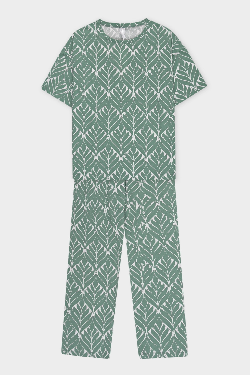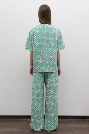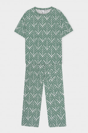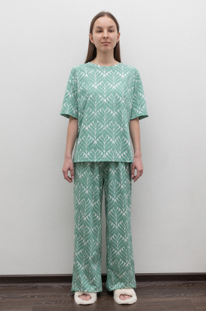 Комплект из высококачественного гребенного хлопка. Свободный крой футболки и мягкий пояс на брюках обеспечивают легкость и свободу движений. Оригинальные набивки выполнены из стойких, гипоаллергенных текстильных красителей. Изделие сохраняет цвет и форму после многократных стирок. Все трикотажные полотна производятся в соответствии с нормами Швейцарского сертификата ЭкоТекс.