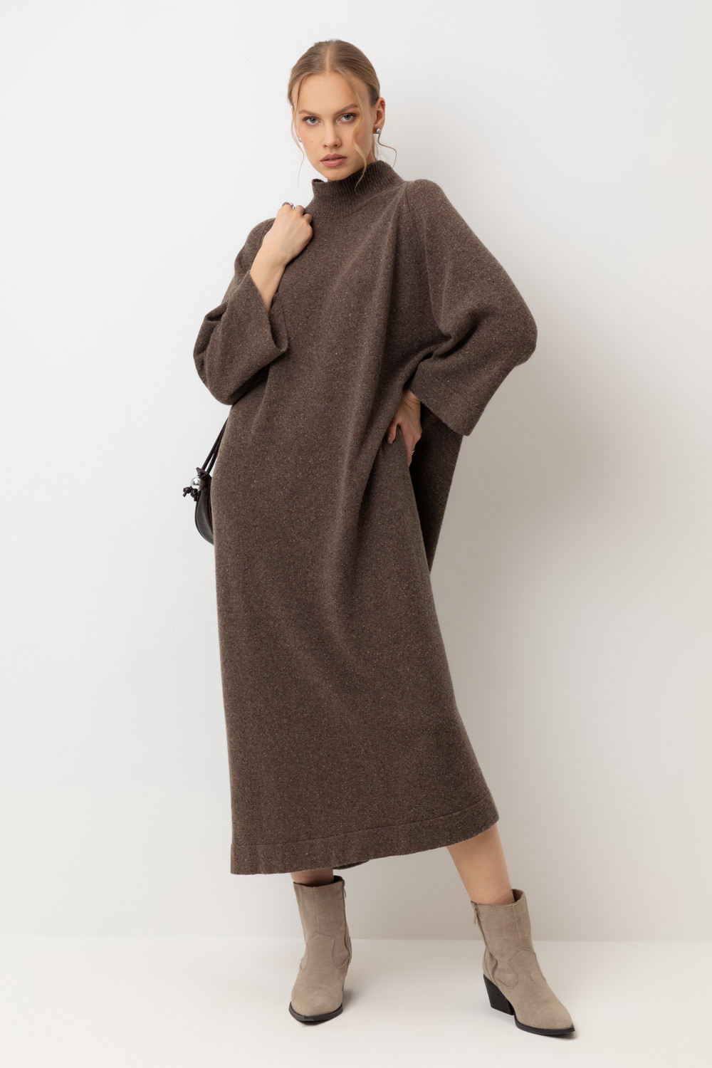 Платье из уникальной коллекции премиальных изделий, выполненных из итальянской шерсти, включает в себя мягчайшую шерсть мериноса и натуральный шелк. Это идеальное сочетание обеспечивает комфортное прилегание к телу, отличную терморегуляцию и воздухопроницаемость. Гладкая текстура с изысканными вкраплениями выглядит особенно стильно и современно.
