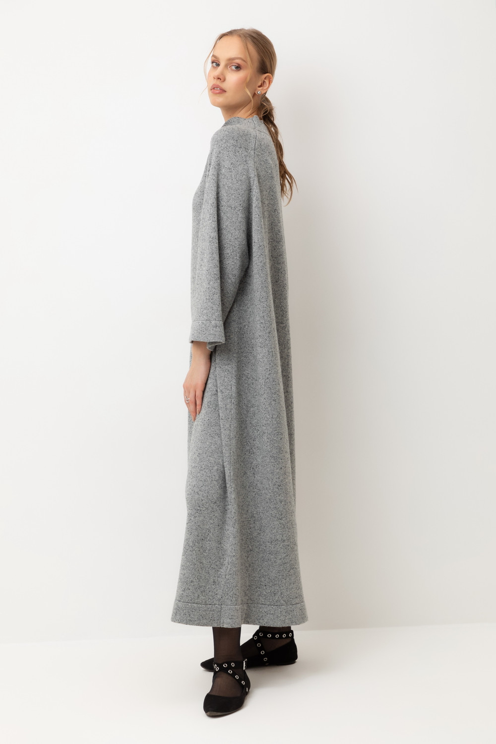 Платье из уникальной коллекции премиальных изделий, выполненных из итальянской шерсти, включает в себя мягчайшую шерсть мериноса и натуральный шелк. Это идеальное сочетание обеспечивает комфортное прилегание к телу, отличную терморегуляцию и воздухопроницаемость. Гладкая текстура с изысканными вкраплениями выглядит особенно стильно и современно.