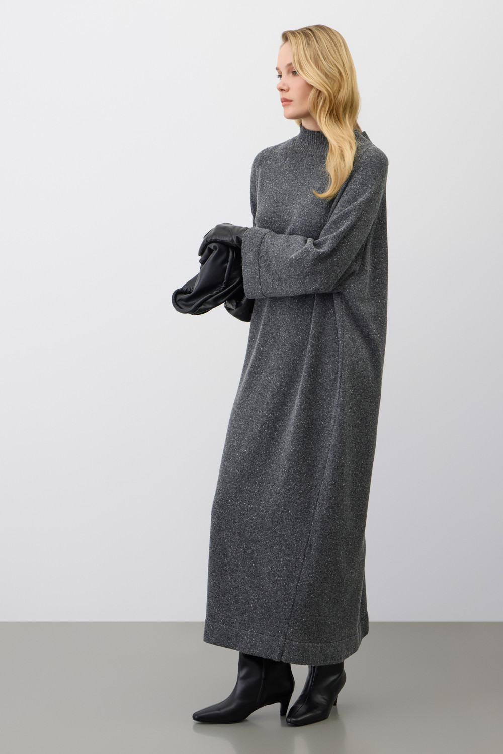 Платье из уникальной коллекции премиальных изделий, выполненных из итальянской шерсти, включает в себя мягчайшую шерсть мериноса и натуральный шелк. Это идеальное сочетание обеспечивает комфортное прилегание к телу, отличную терморегуляцию и воздухопроницаемость. Гладкая текстура с изысканными вкраплениями выглядит особенно стильно и современно.