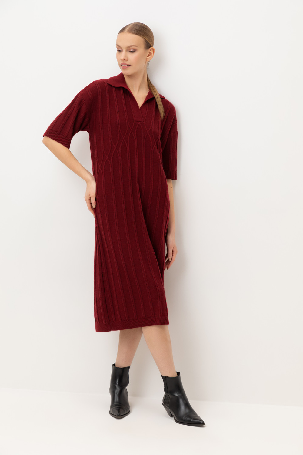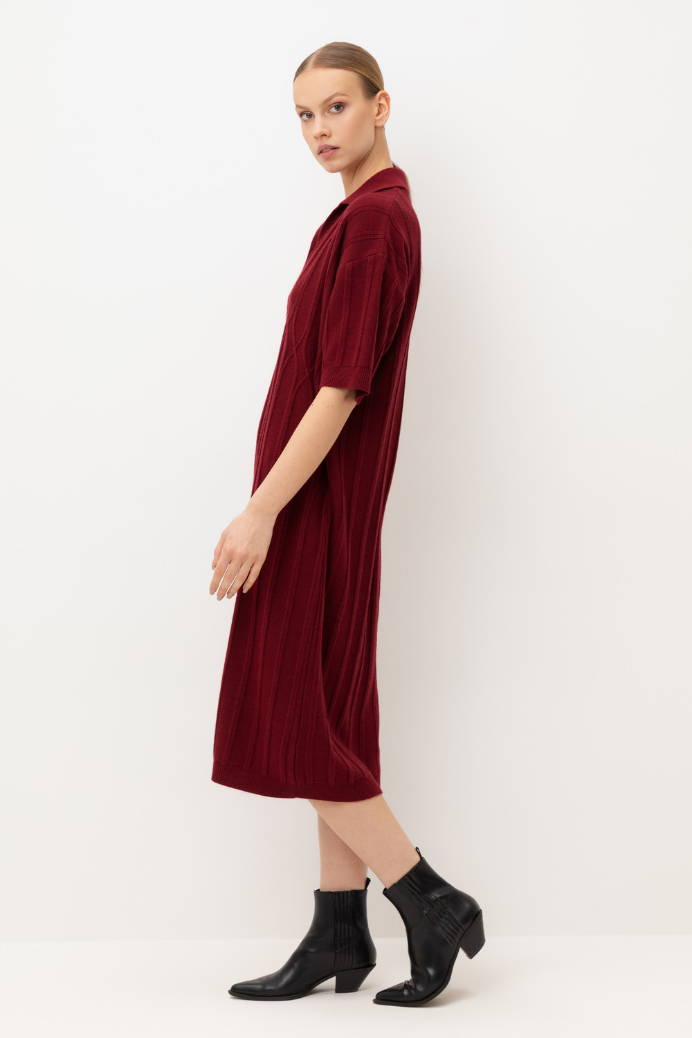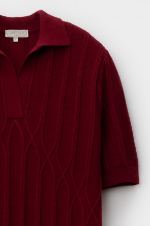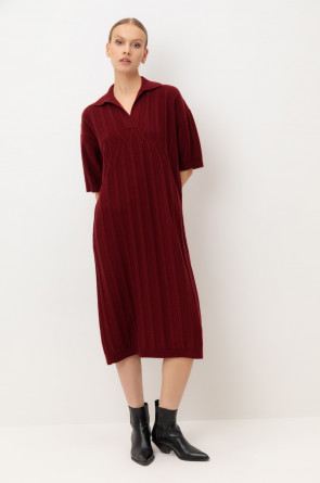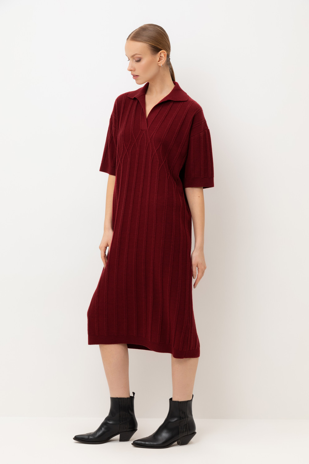 Платье-поло, изготовленное из австралийского мериноса. Натуральная шерсть обеспечивает комфорт, отличную терморегуляцию и высокую воздухопроницаемость. Элегантный воротник в стиле поло и короткие рукава формируют современный и универсальный силуэт, идеально подходящий как для офисных встреч, так и для прогулок по городу.