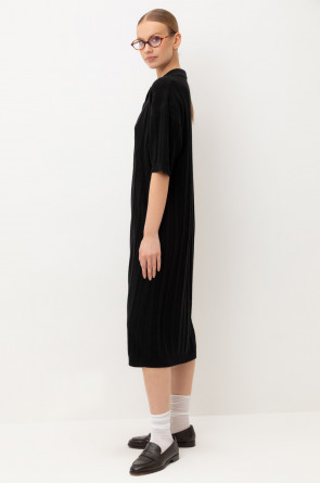 Платье-поло, изготовленное из австралийского мериноса. Натуральная шерсть обеспечивает комфорт, отличную терморегуляцию и высокую воздухопроницаемость. Элегантный воротник в стиле поло и короткие рукава формируют современный и универсальный силуэт, идеально подходящий как для офисных встреч, так и для прогулок по городу.