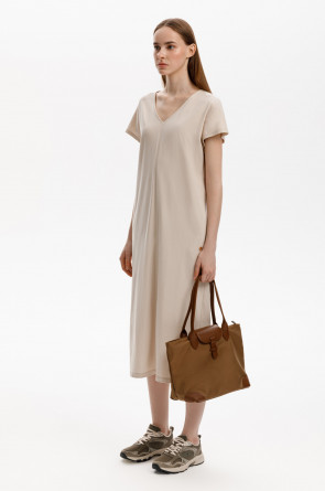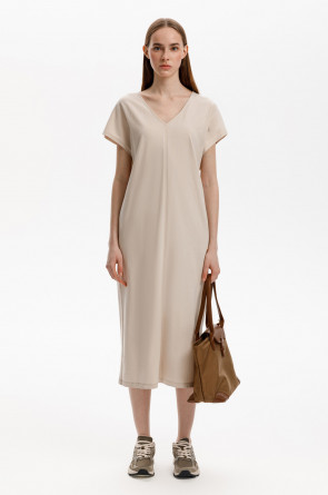Лаконичное трикотажное платье из 100% мягкого хлопка. Наличие боковых карманов придают изделию функциональность.