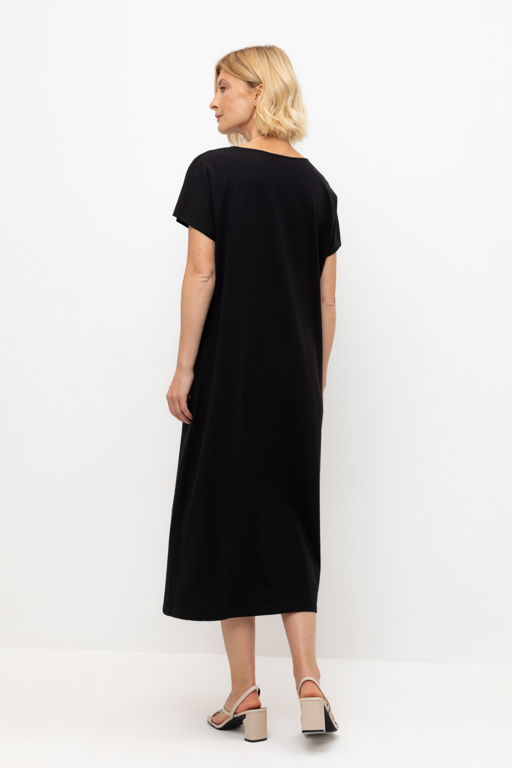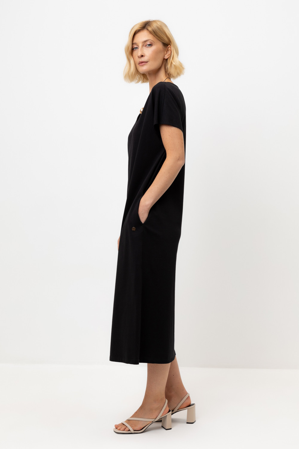 Лаконичное трикотажное платье из 100% мягкого хлопка. Наличие боковых карманов придают изделию функциональность.