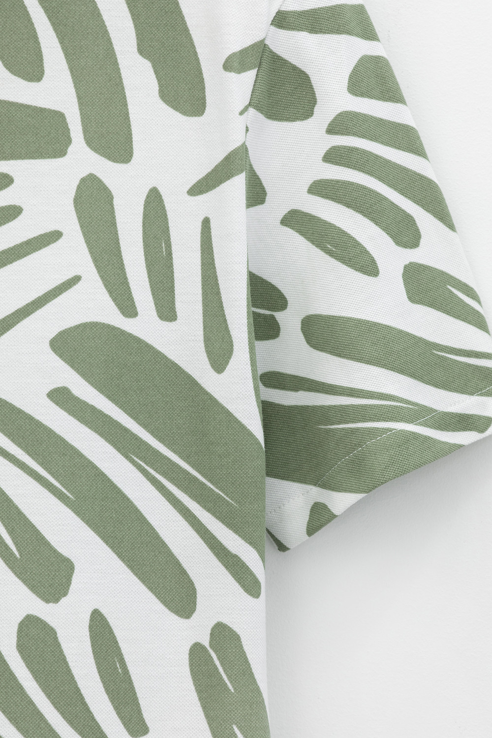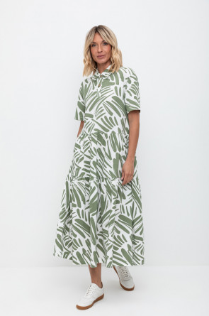 Женское платье из набивного пике с воротником поло, короткими рукавами и широкими оборками . Все трикотажные полотна производятся в соответствии с нормами Швейцарского сертификата ЭкоТекс. Сделано в России