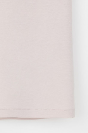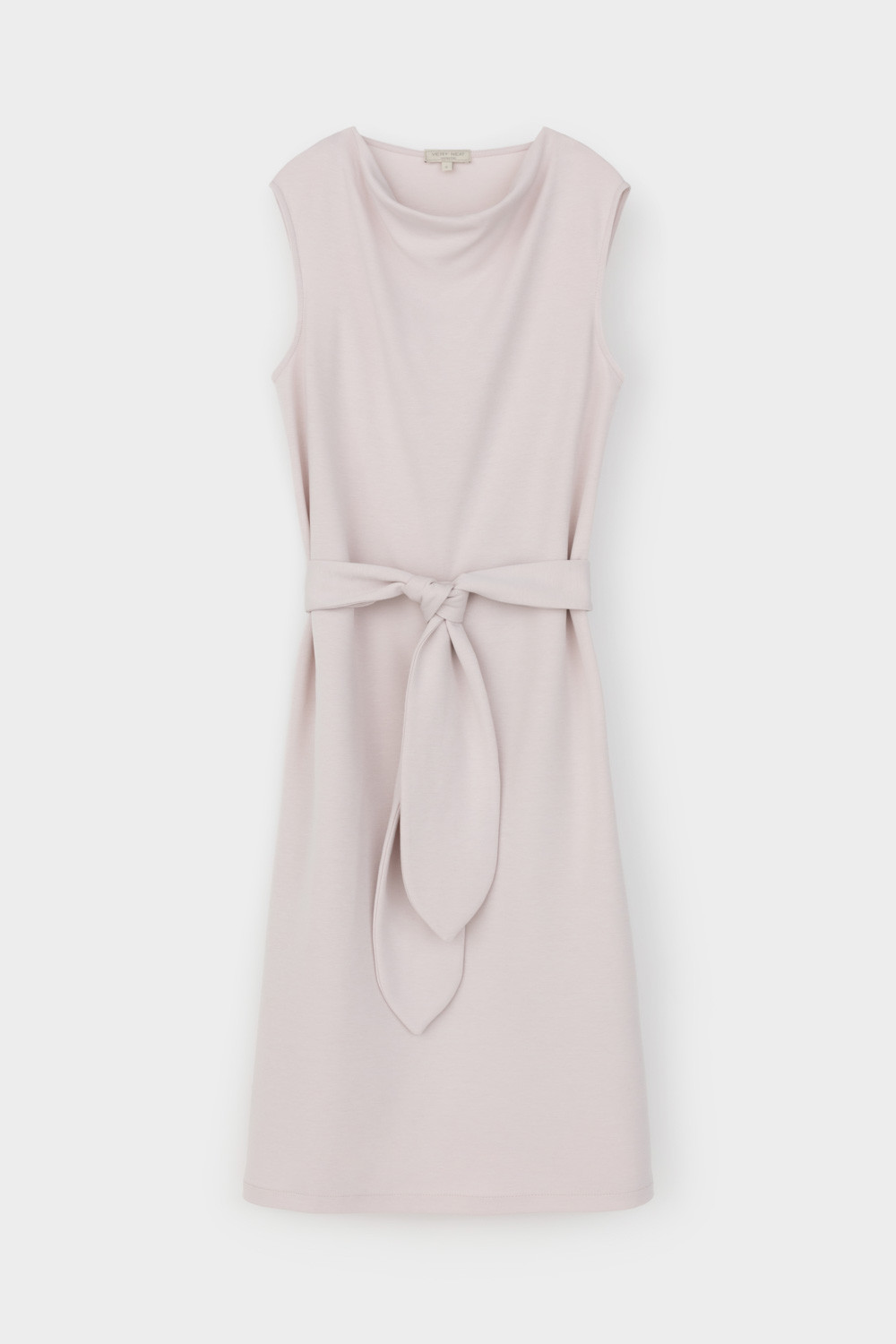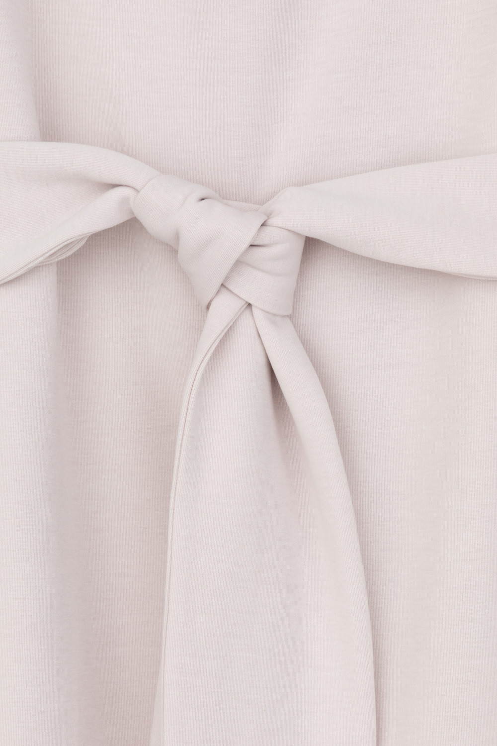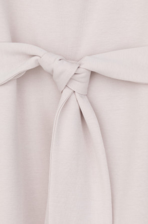 Летнее платье прямого силуэта с драпировкой на уровне декольте, изготовленное из премиального трикотажа DOUBLE FACE, дарит ощущение комфорта и легкости. Широкий трикотажный пояс поможет создать приталенный силуэт. Серо-сиреневый цвет - это нежный оттенок, который придает образу романтичный стиль.