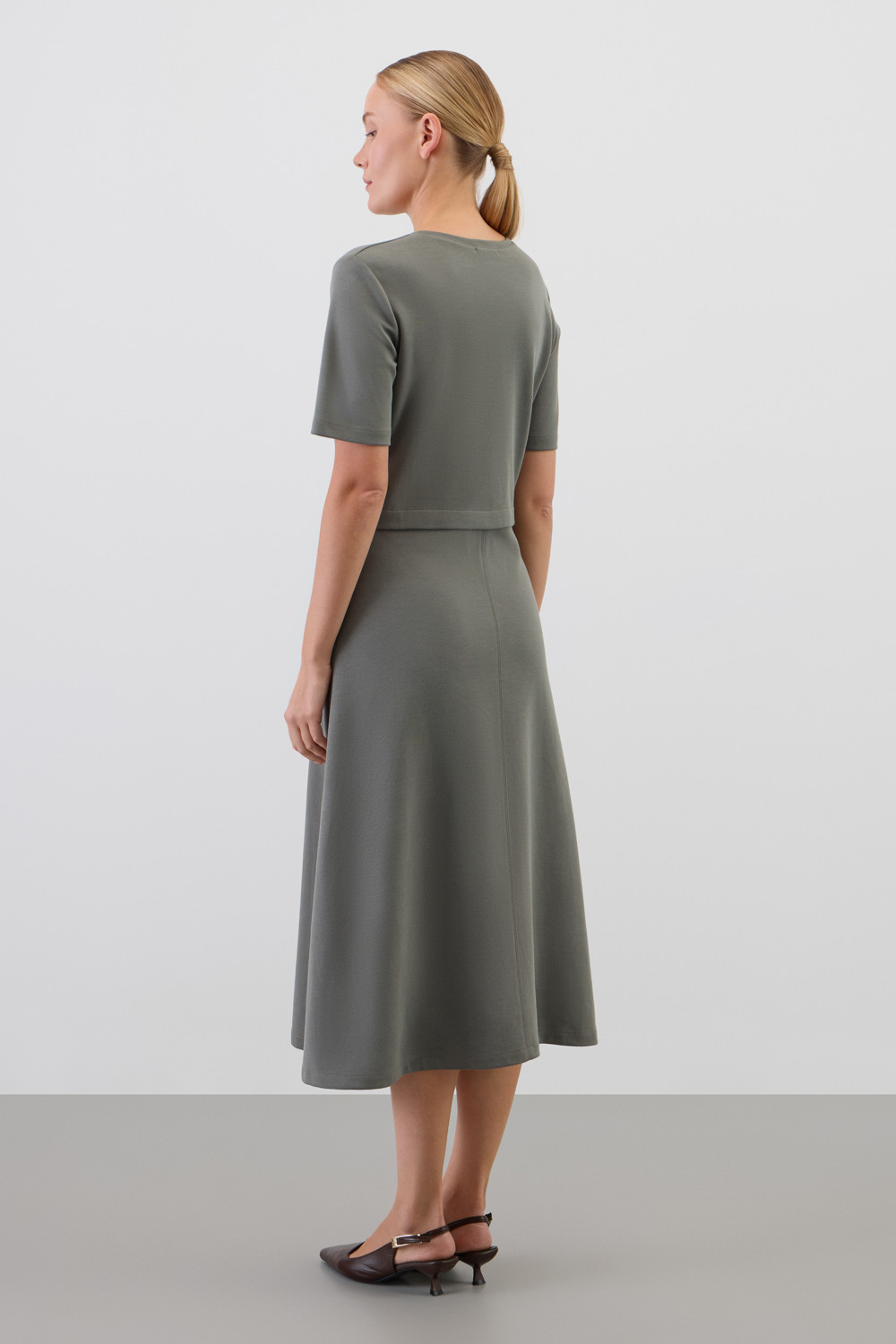 Платье станет воплощением элегантности и актуальности в своем повседневном стиле. Инновационный материал DOUBLE FACE, из которого выполнено платье, отличается эластичностью, позволяет коже дышать и сохраняет свою форму.