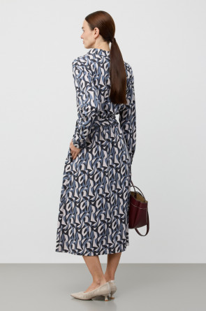 Элегантное платье с воротником-стойкой выполнено из премиального трикотажа DOUBLE FACE. Этот уникальный материал прошел специальную силиконовую обработку, благодаря чему он отличается легкостью и обладает восхитительной шелковистой текстурой. В комплекте предусмотрен пояс, который добавляет образу завершенности.