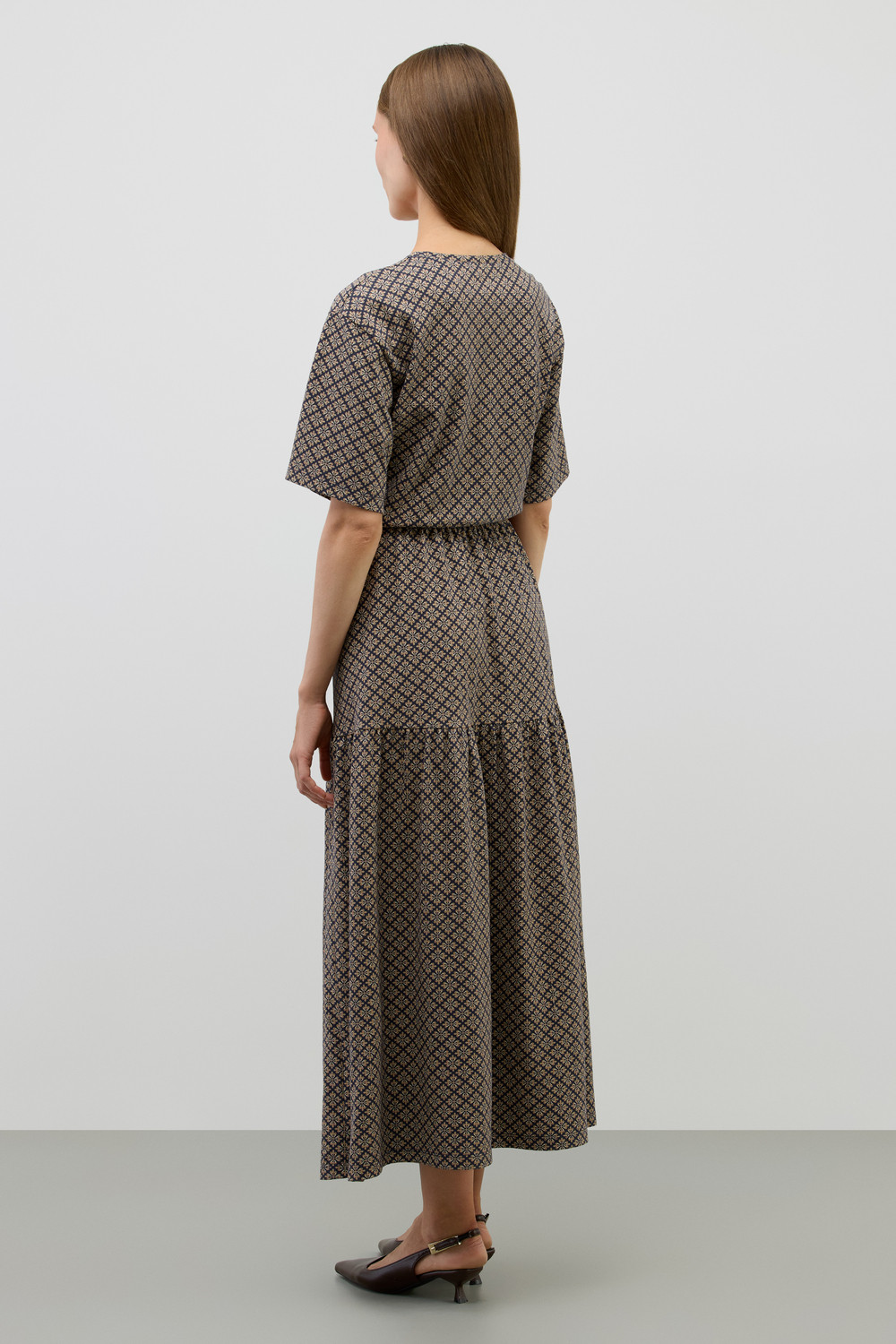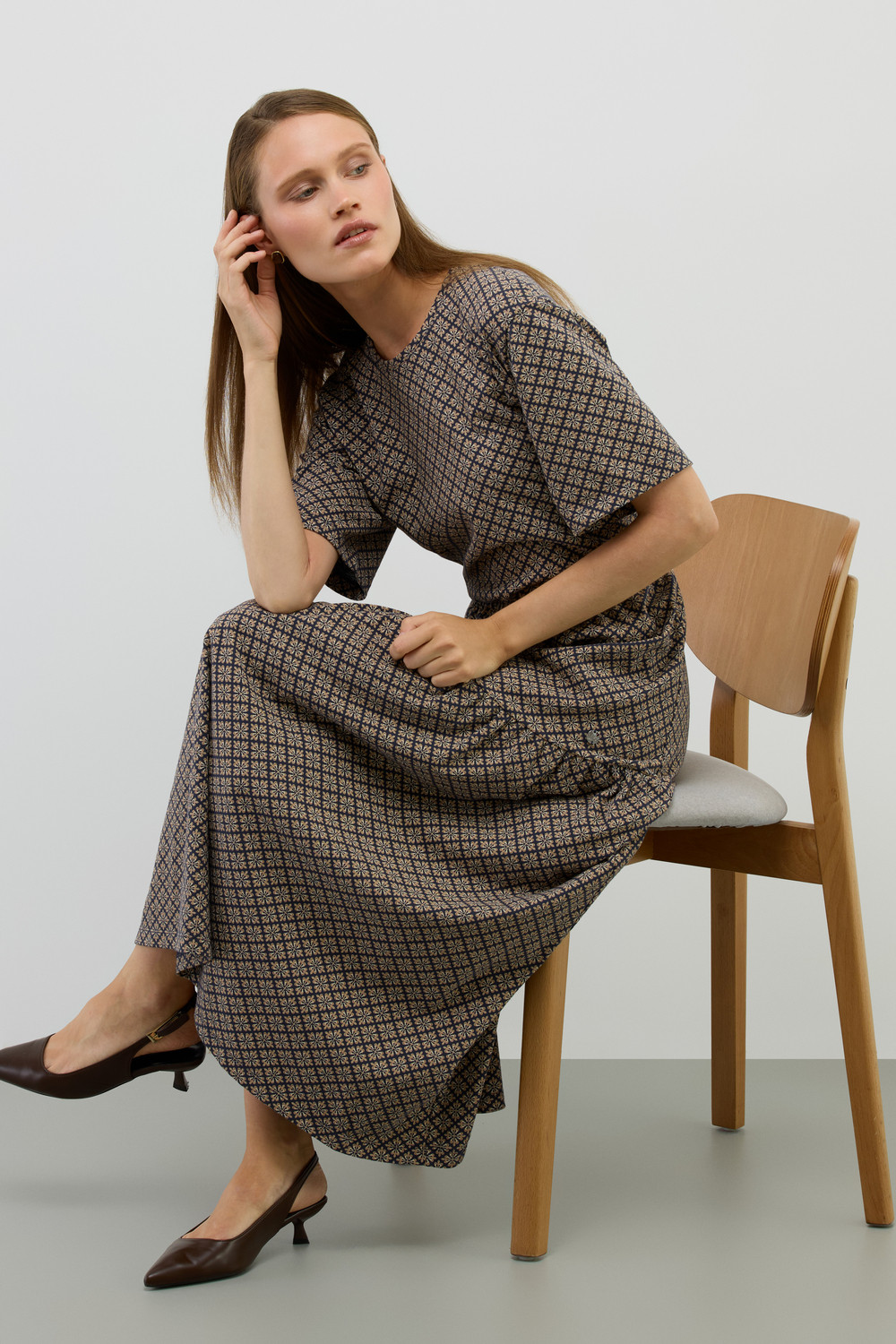Текстурное платье из легкого 100% хлопка. Сборки на талии и по низу создают легкий и воздушный силуэт. Это платье – идеальный выбор для создания разнообразных образов: от повседневного стиля до более утонченных нарядов.