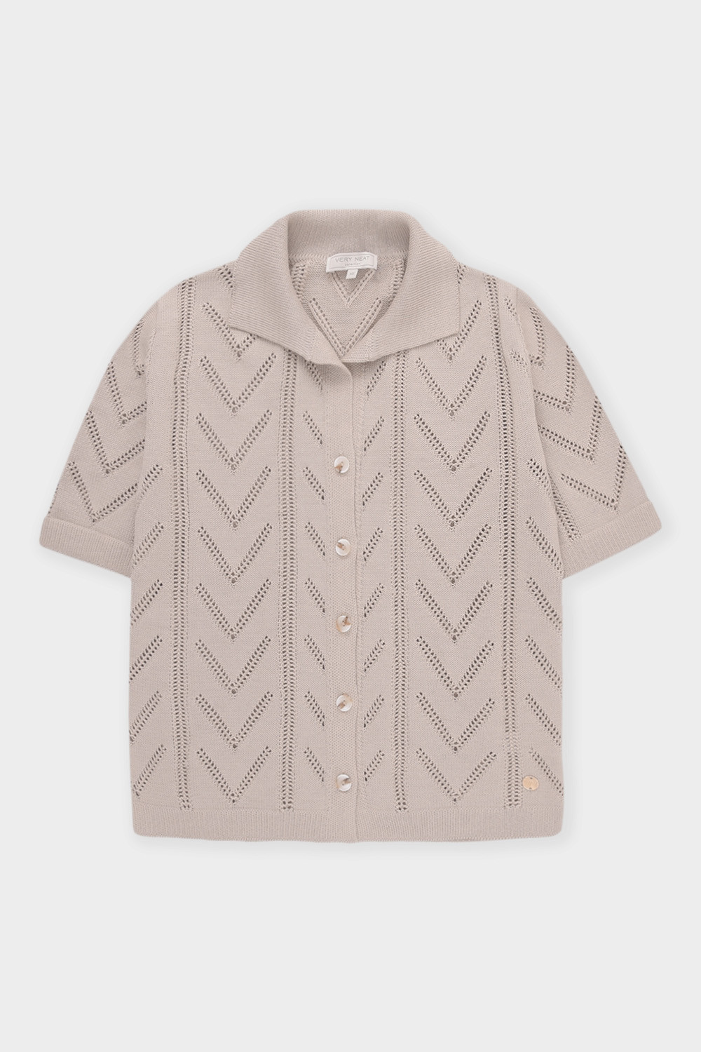 Ажурная вязка придает рубашке воздушность, натуральный цвет позволяет создавать множество образов. Изделие прошло дополнительную обработку по итальянской технологии, это гарантирует минимальную усадку во время носки. Акрил в составе не позволяет изделию пилинговаться.
