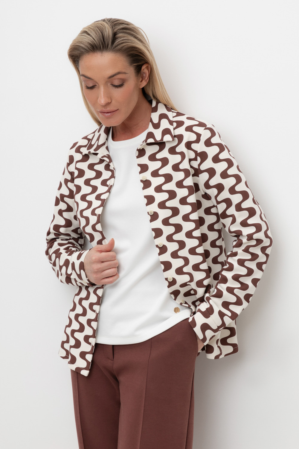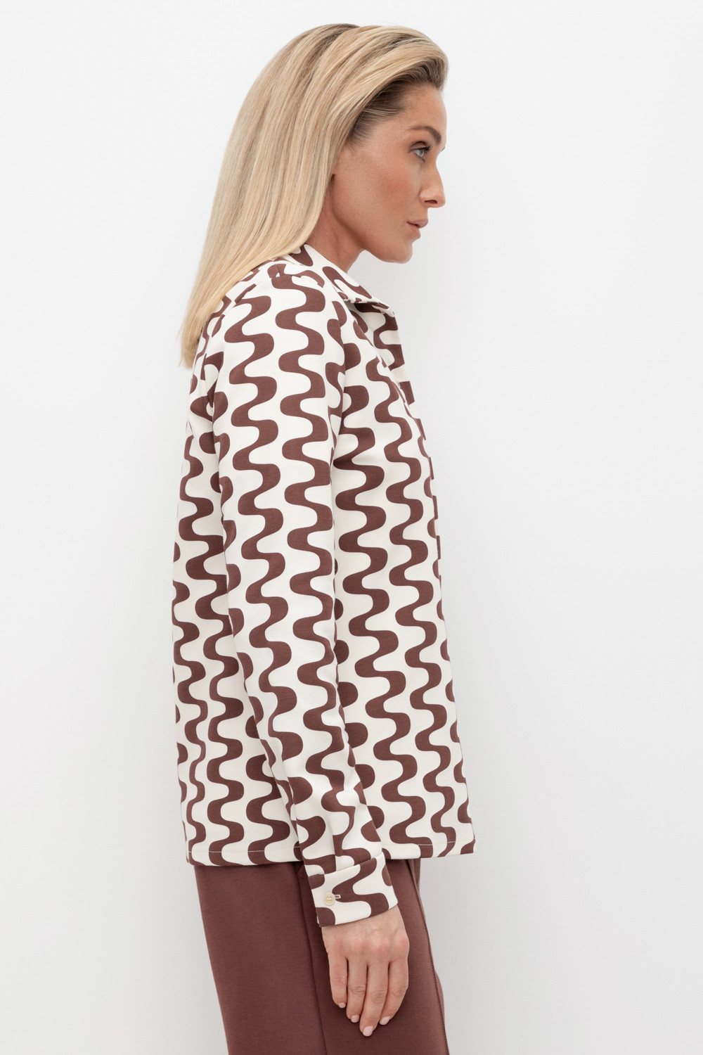 Рубашка прямого кроя из плотного гладкого трикотажа интерлок с длинными рукавами с застежкой на пуговицы