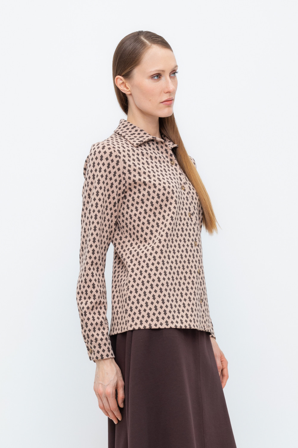 Рубашка свободного кроя из плотного гладкого трикотажа интерлок с длинными рукавами с застежкой на пуговицы