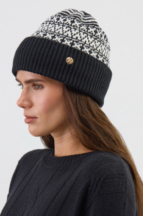 Уютная вязаная шапка с отворотом из шерсти и акрила. Шерсть хорошо сохраняет тепло, а волокна акрила делают шапку мягкой. Лаконичный фасон аккуратно садится по форме головы и хорошо сочетается с верхней одеждой.
