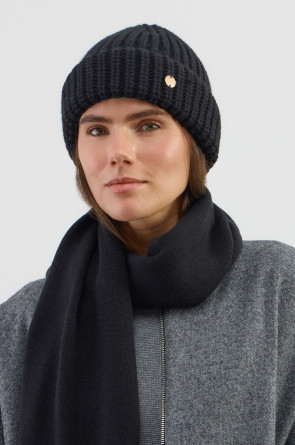 Уютная вязаная шапка с отворотом из шерсти и акрила. Шерсть хорошо сохраняет тепло, а волокна акрила делают шапку мягкой. Лаконичный фасон аккуратно садится по форме головы и хорошо сочетается с верхней одеждой.