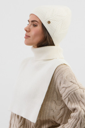 Уютная вязаная шапка из шерсти и акрила. Шерсть хорошо сохраняет тепло, а волокна акрила делают шапку мягкой. Лаконичный фасон аккуратно садится по форме головы и хорошо сочетается с верхней одеждой.
