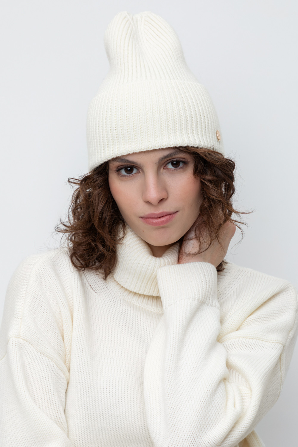 Уютная вязаная шапка с отворотом из шерсти и акрила. Шерсть мериноса хорошо сохраняет тепло, а волокна акрила делают шапку мягкой и предотвращают появление катышек. Лаконичный фасон аккуратно садится по форме головы и хорошо сочетается с верхней одеждой.
