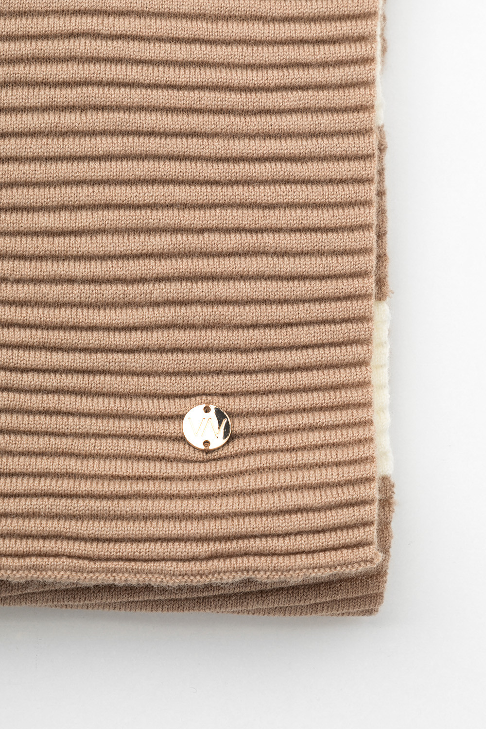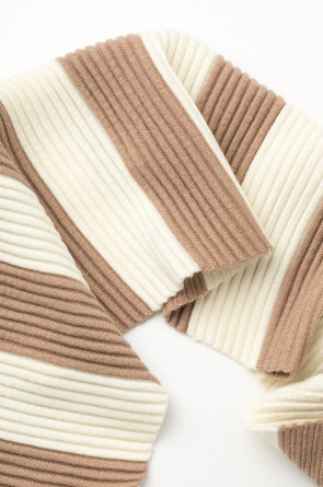 Уютный вязаный шарф с полосками из шерсти и акрила. Шерсть в составе сохраняет тепло, а волокна акрила придают изделию мягкость и объем.