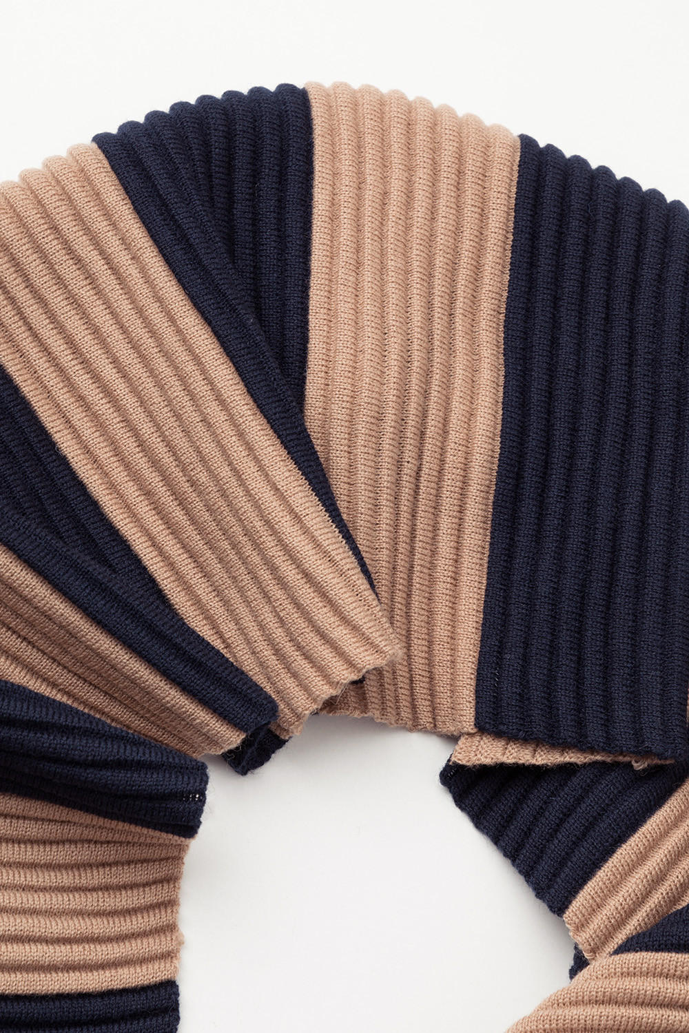 Уютный вязаный шарф с полосками из шерсти и акрила. Шерсть в составе сохраняет тепло, а волокна акрила придают изделию мягкость и объем.