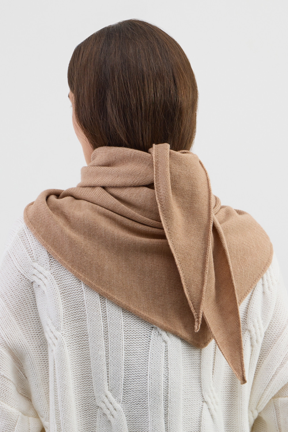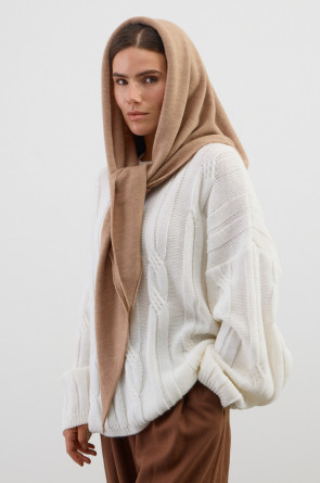 Мягкая вязаная косынка из шерсти и акрила станет стильной заменой шапке. Шерсть в составе сохраняет тепло, а волокна акрила придают изделию мягкость и объем.