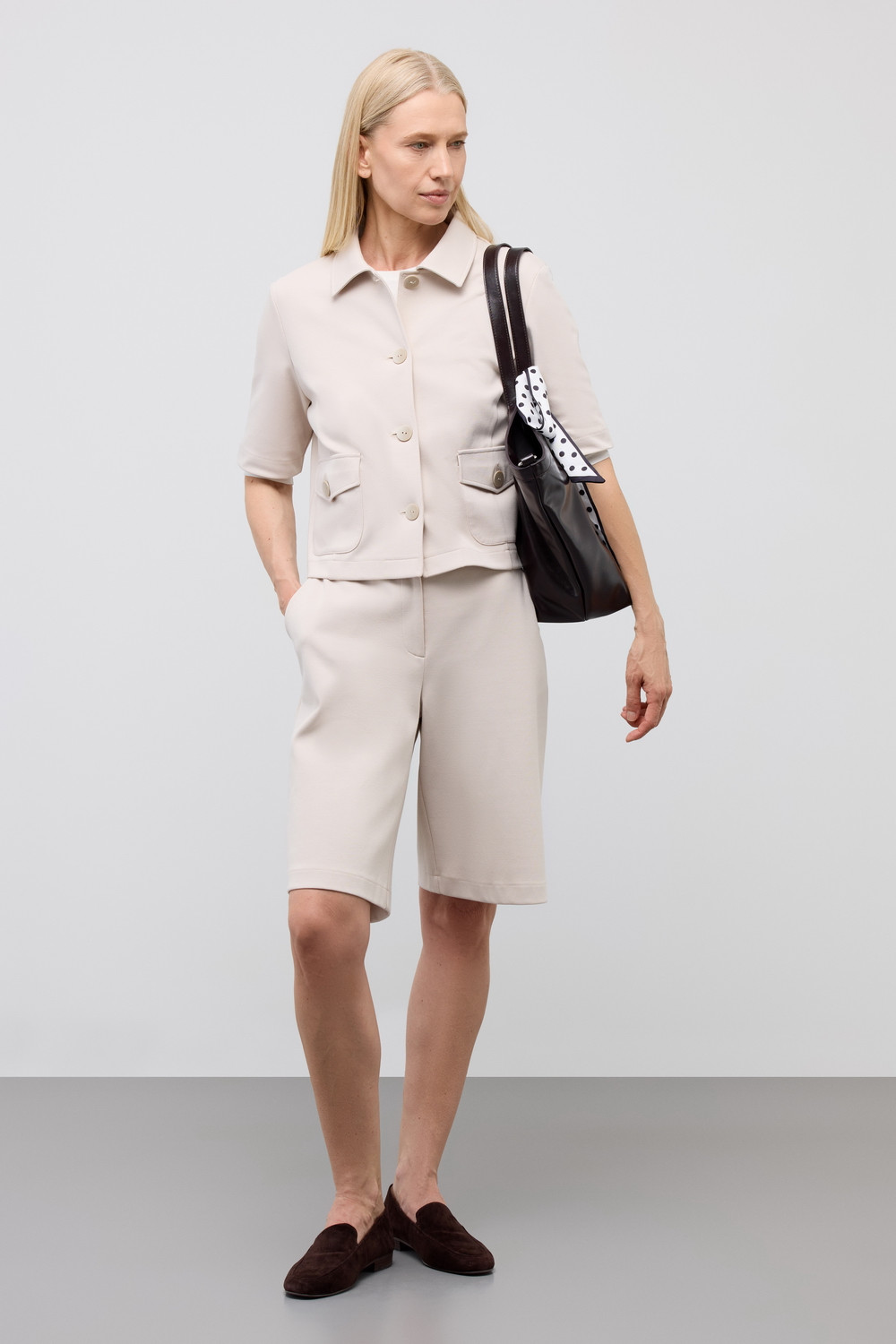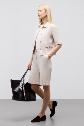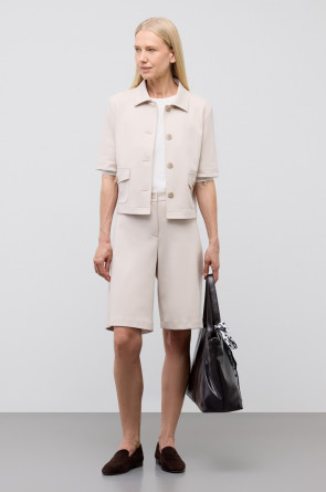 Шорты из премиального трикотажного полотна. Удобный пояс с застежкой на молнию и карманы придают шортам практичность и функциональность, а комфортная длина позволит носить изделие как во время отдыха, так и в официальной обстановке.