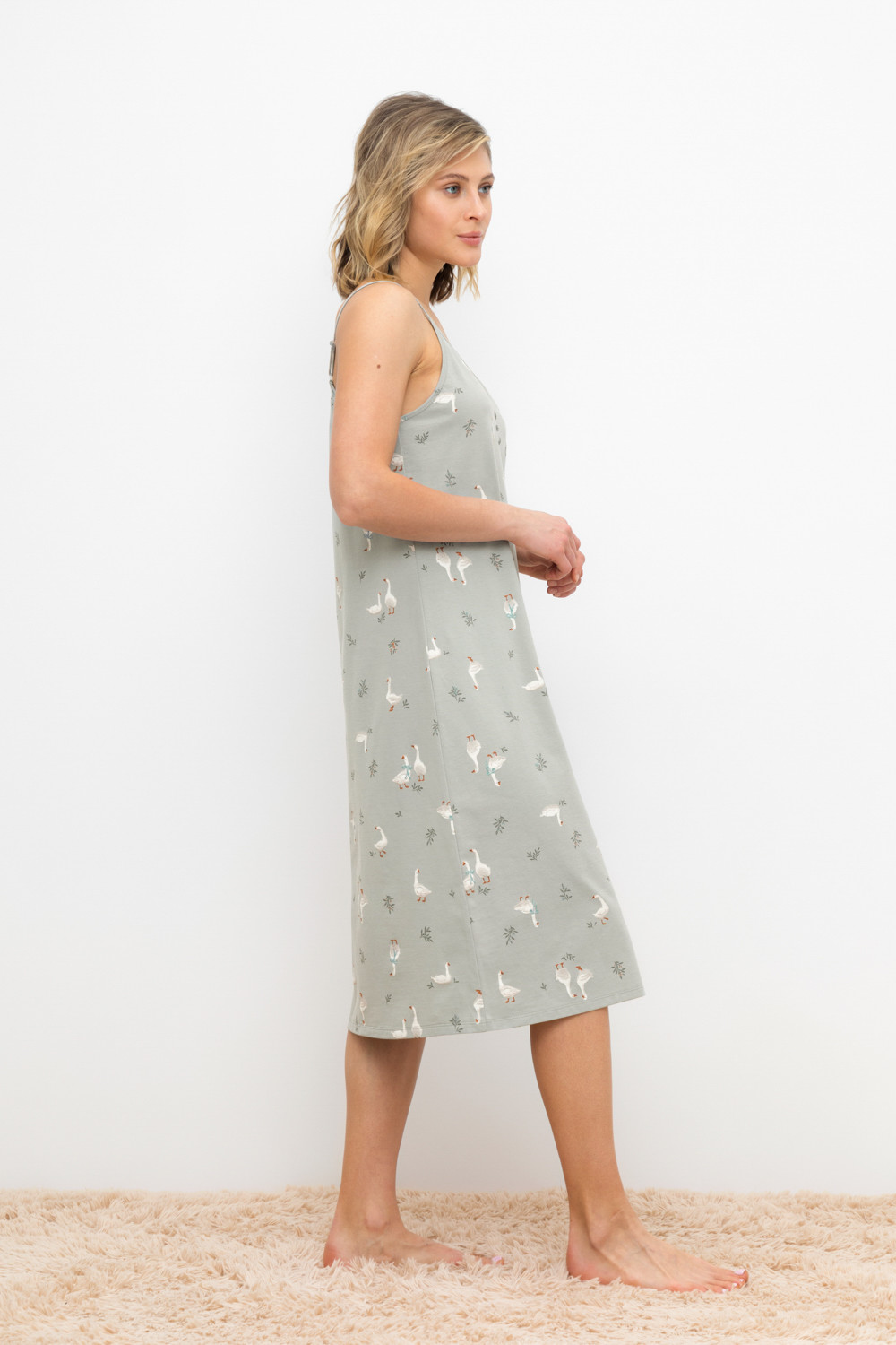 Элегантная сорочка на бретелях для комфортного сна из 100% натурального хлопка. На груди декоративные пуговицы. Гладкий материал приятен к телу и позволяет коже дышать.