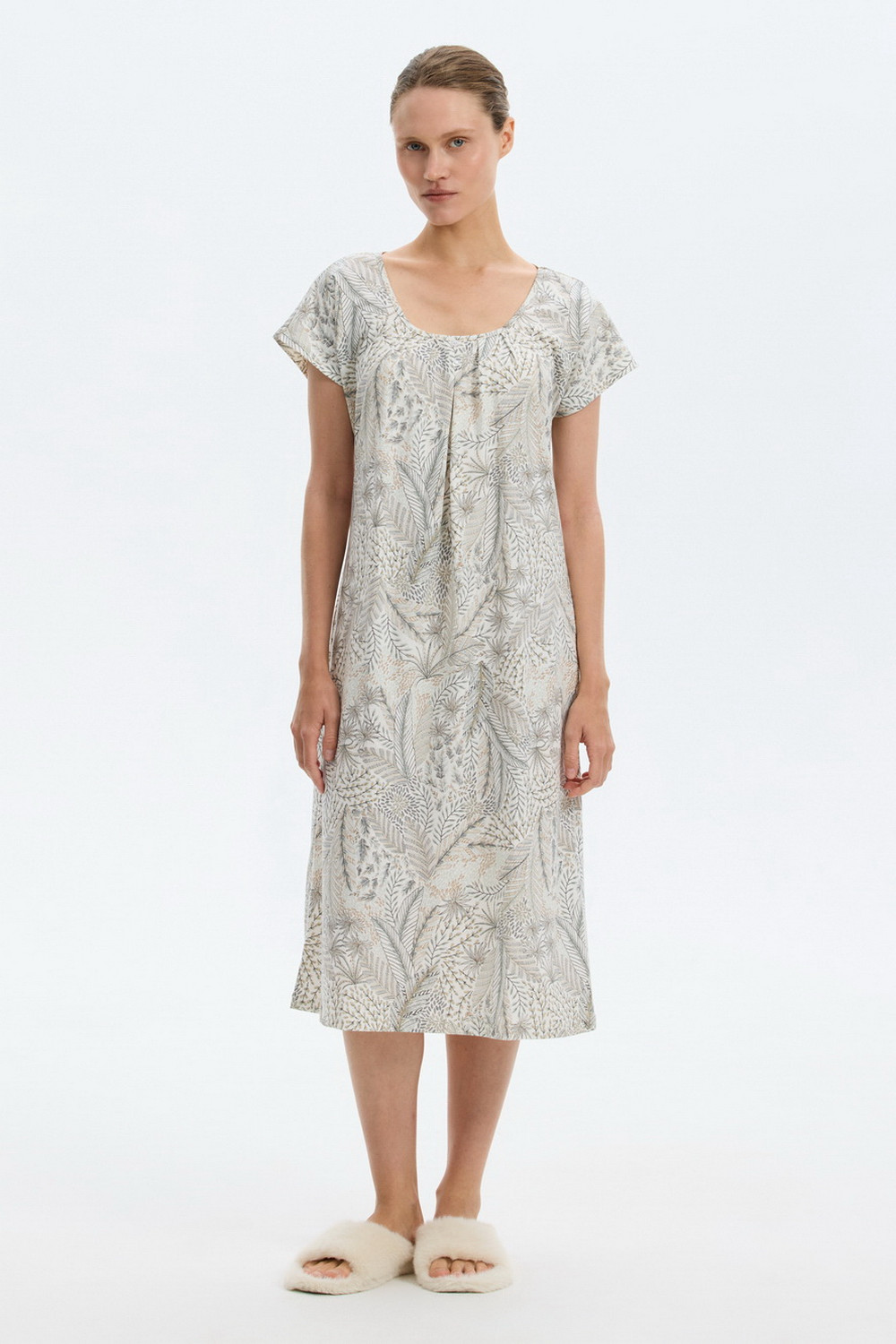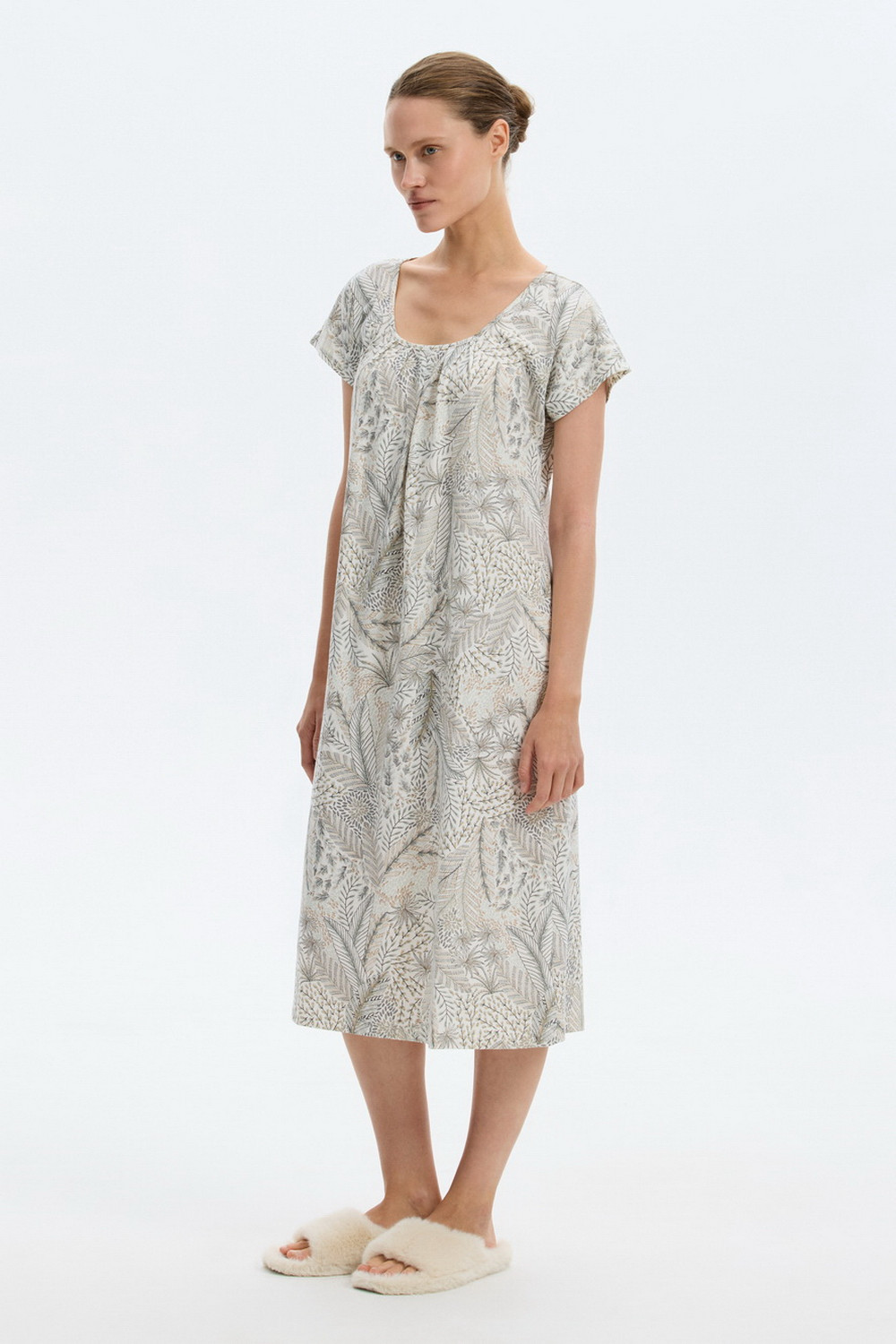 Сорочка с коротким рукавом и защипами выполнена из высококачественного хлопка. Свободный крой добавляет комфорта во время сна.