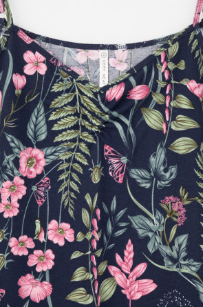 Элегантная сорочка на бретелях из 100% натурального хлопка для комфортного сна. Модель из трикотажного полотна супрем с набивным нежным рисунком с регулируемыми бретелями. На груди сборка. Гладкий материал приятен к телу и позволяет коже дышать.