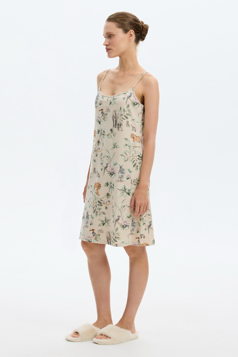 Сорочка из 100% хлопка. Регулируемые бретели позволяют подстроить их под ваши предпочтения, а удобный крой добавляет комфорта во время сна.