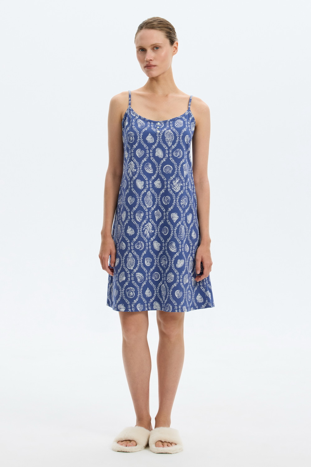 Сорочка из 100% хлопка. Регулируемые бретели позволяют подстроить их под ваши предпочтения, а удобный крой добавляет комфорта во время сна.