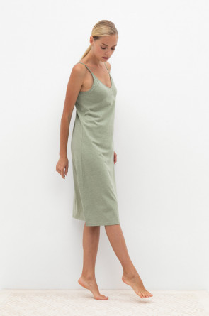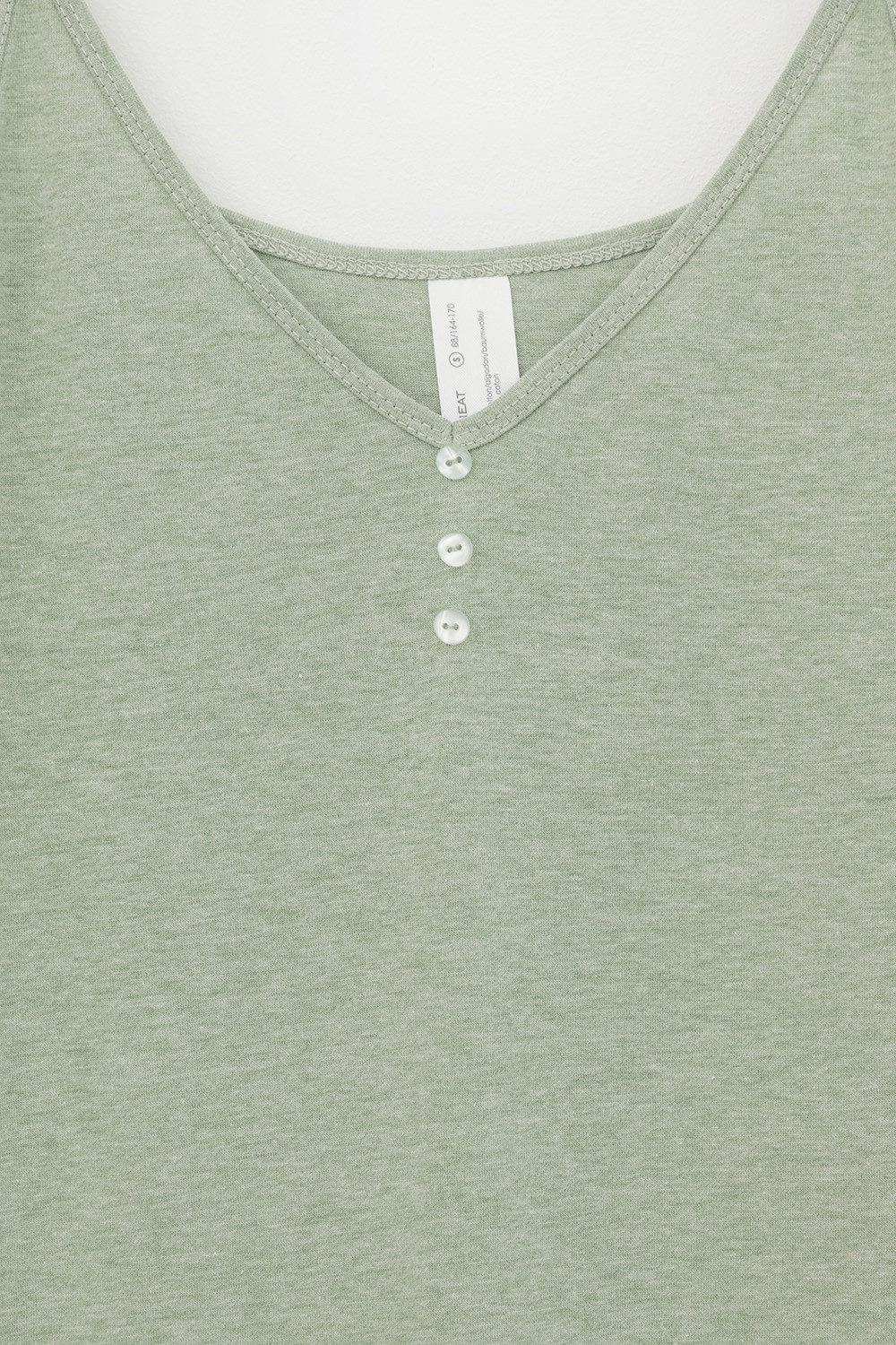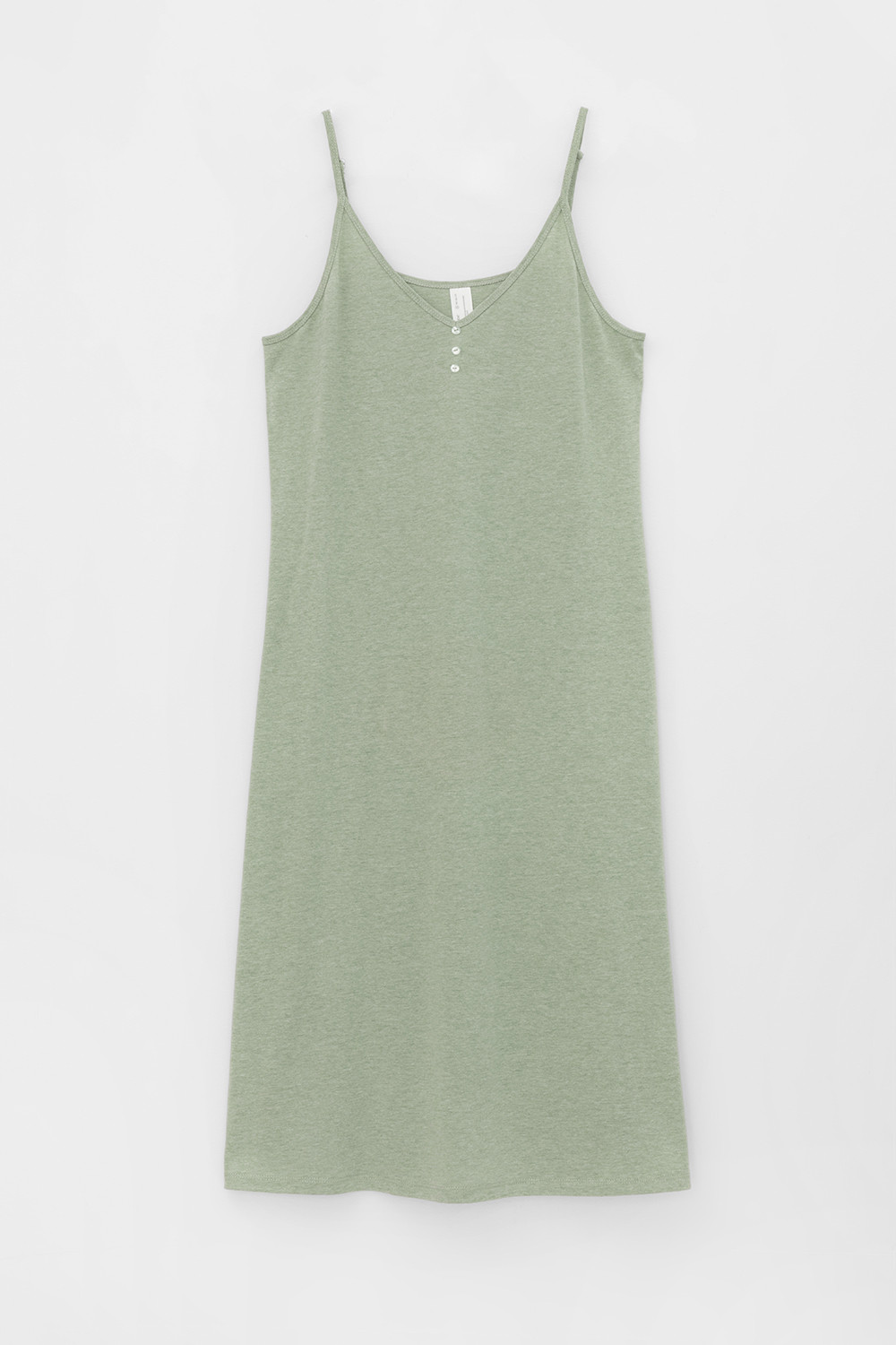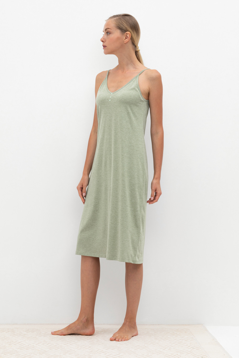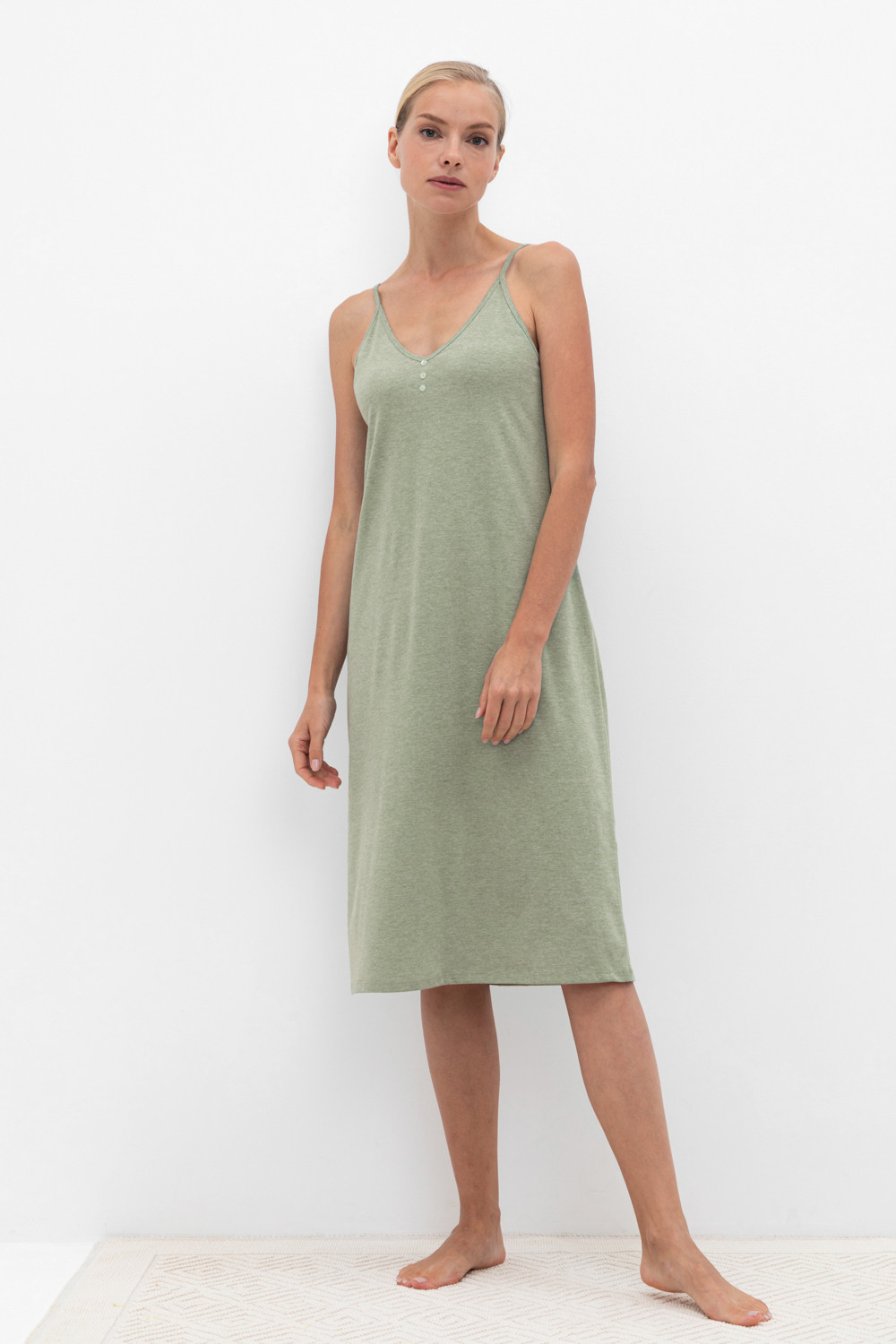 Элегантная меланжевая сорочка с регулируемыми бретелями для комфортного сна. На груди декоративные пуговицы. Гладкий материал приятен к телу и позволяет коже дышать.