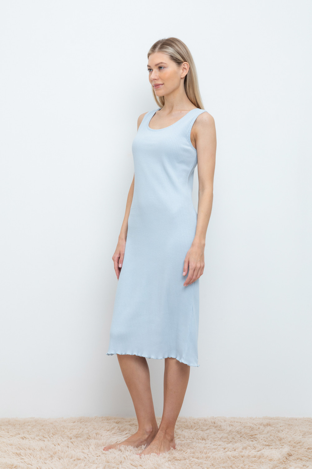Комфортная сорочка на лямках в рубчик из 100% натурального хлопка .