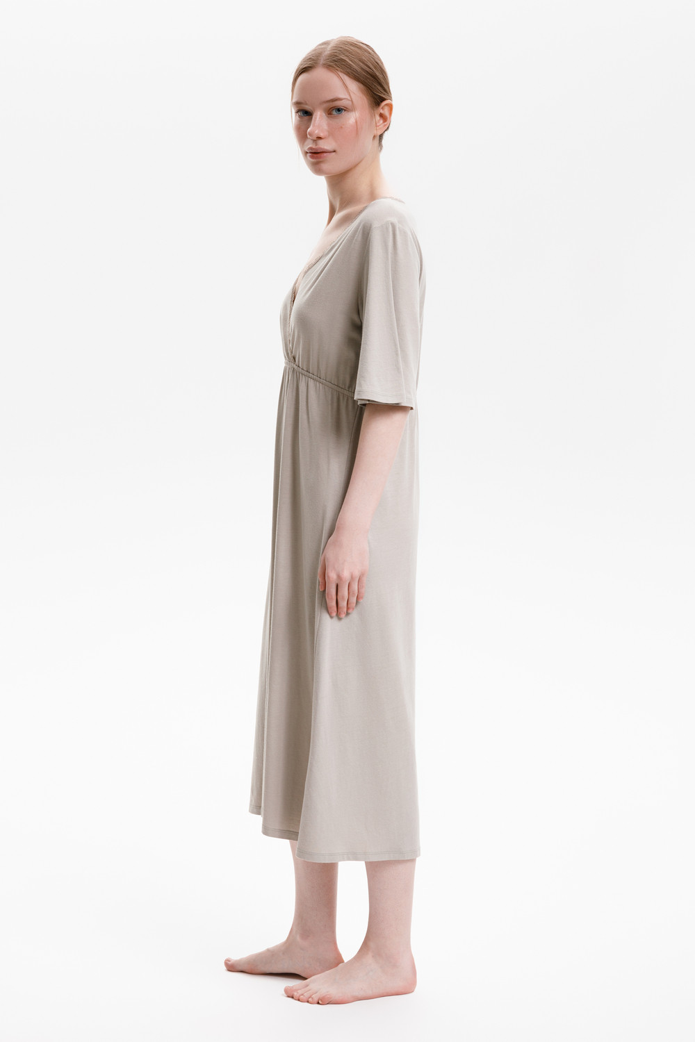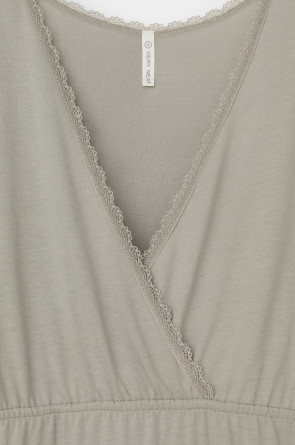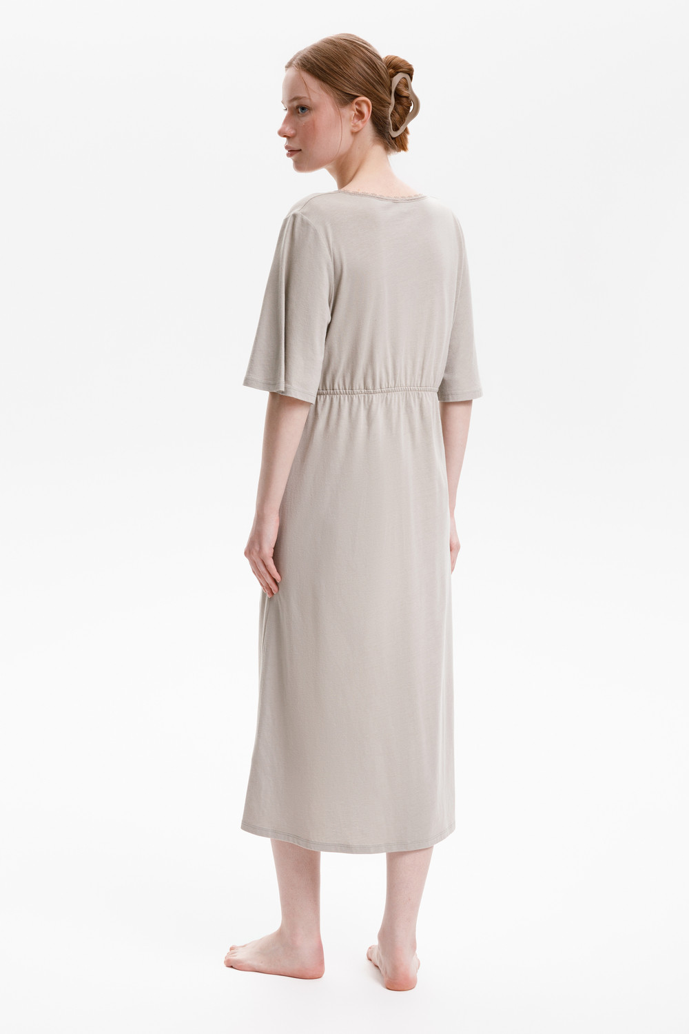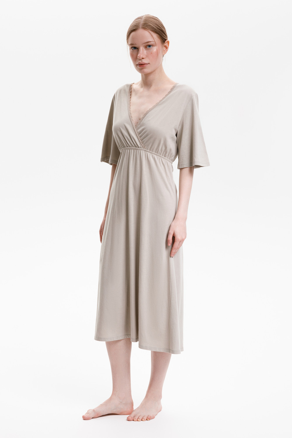 Комфортная сорочка с коротким рукавом выполнена из высококачественного гребенного хлопка с добавлением модала. Эластичное кружево нежно обрамляет зону декольте, а свободный крой добавляет комфорта во время сна.