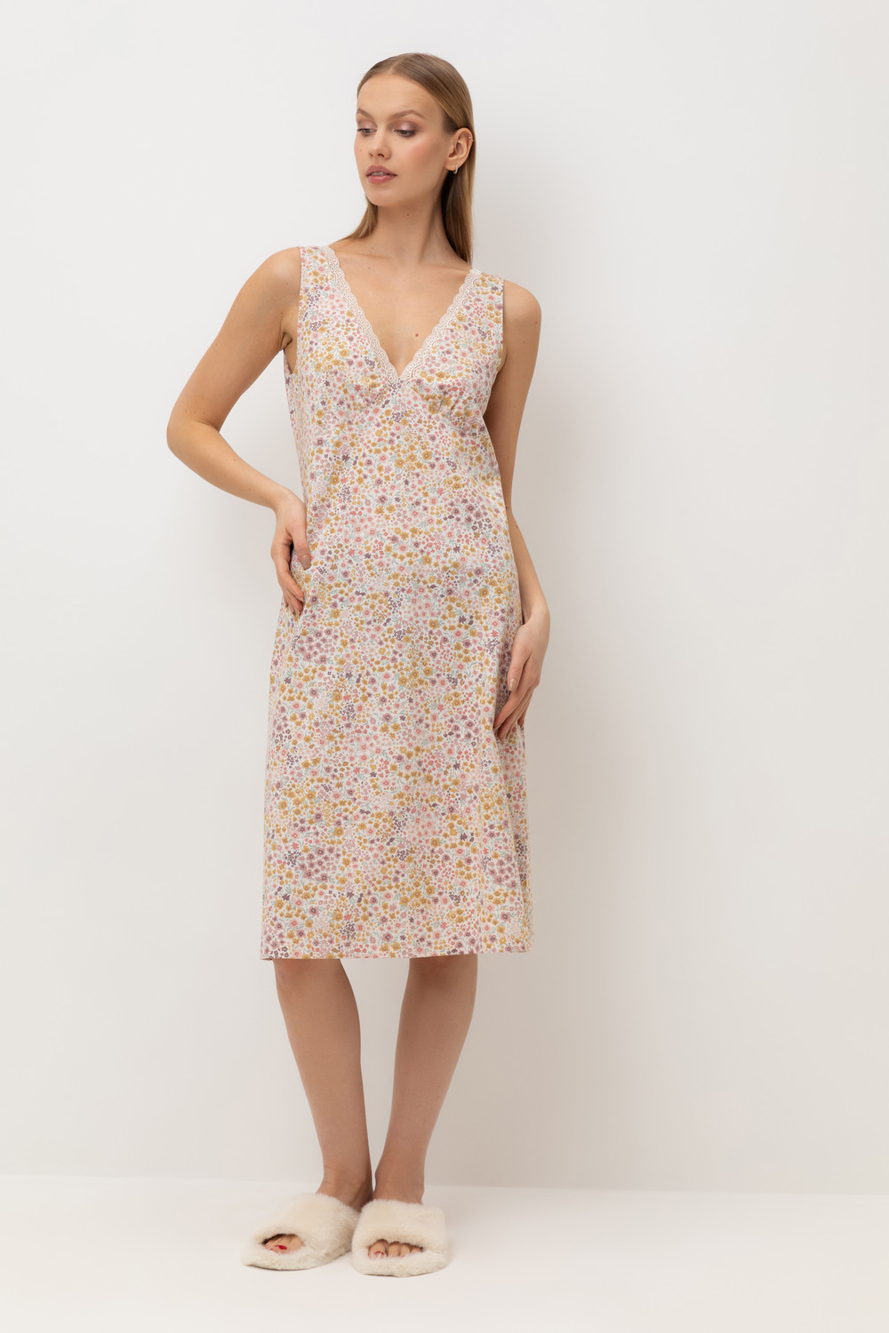 Комфортная сорочка на широких бретелях выполнена из высококачественного гребенного хлопка. Свободный крой добавляет комфорта во время сна.