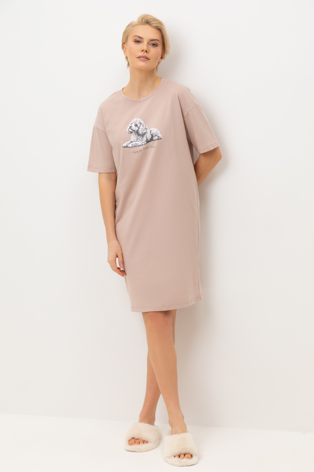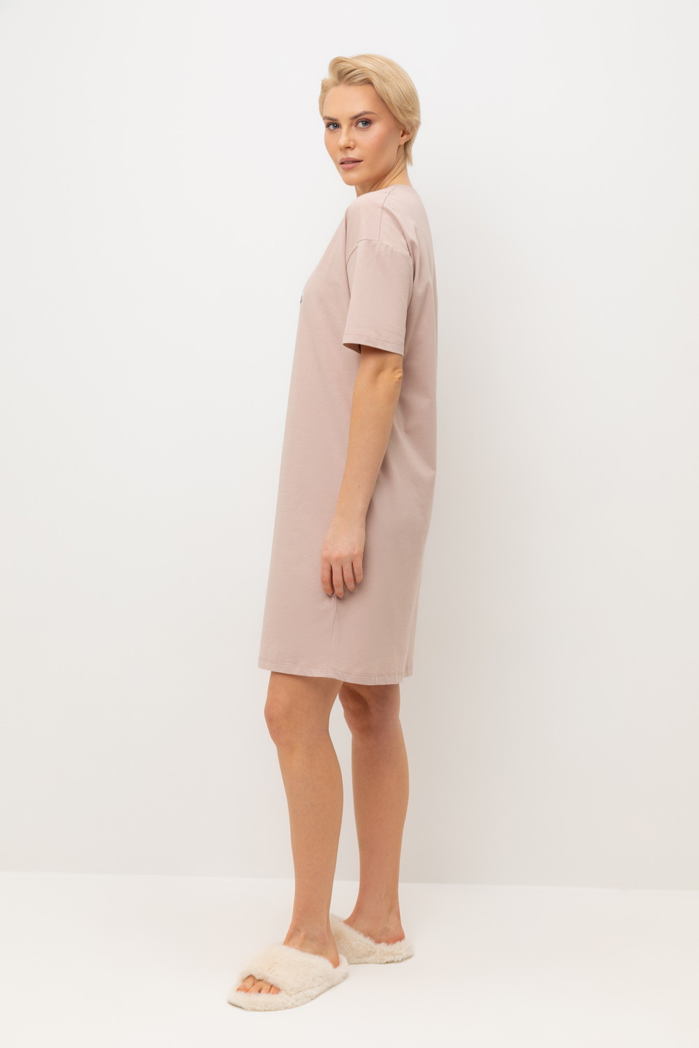 Комфортная сорочка выполнена из высококачественного 100% хлопка. Свободный крой добавляет комфорт для домашнего отдыха