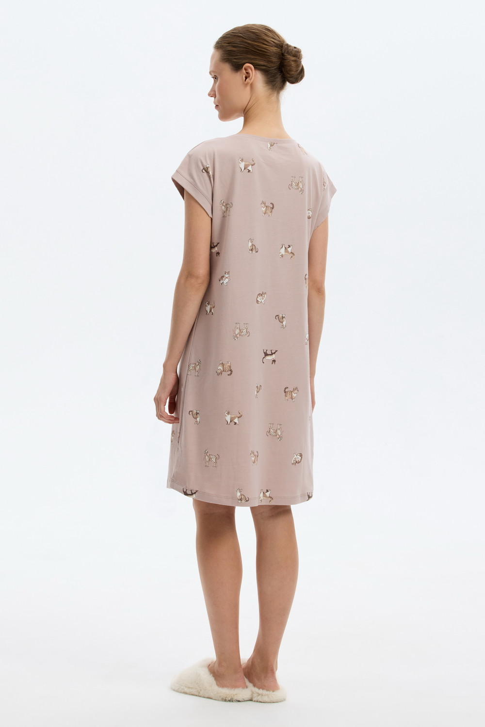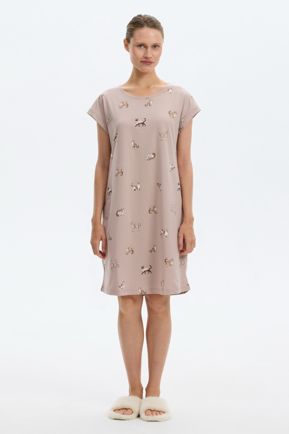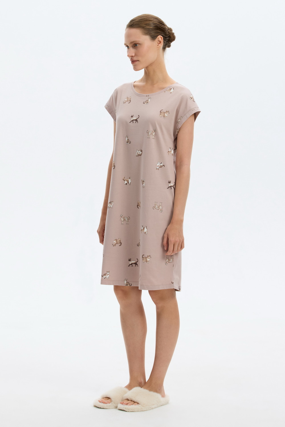 Удлиненная футболка выполнена из высококачественного 100% хлопка. Свободный крой добавляет комфорт для домашнего отдыха