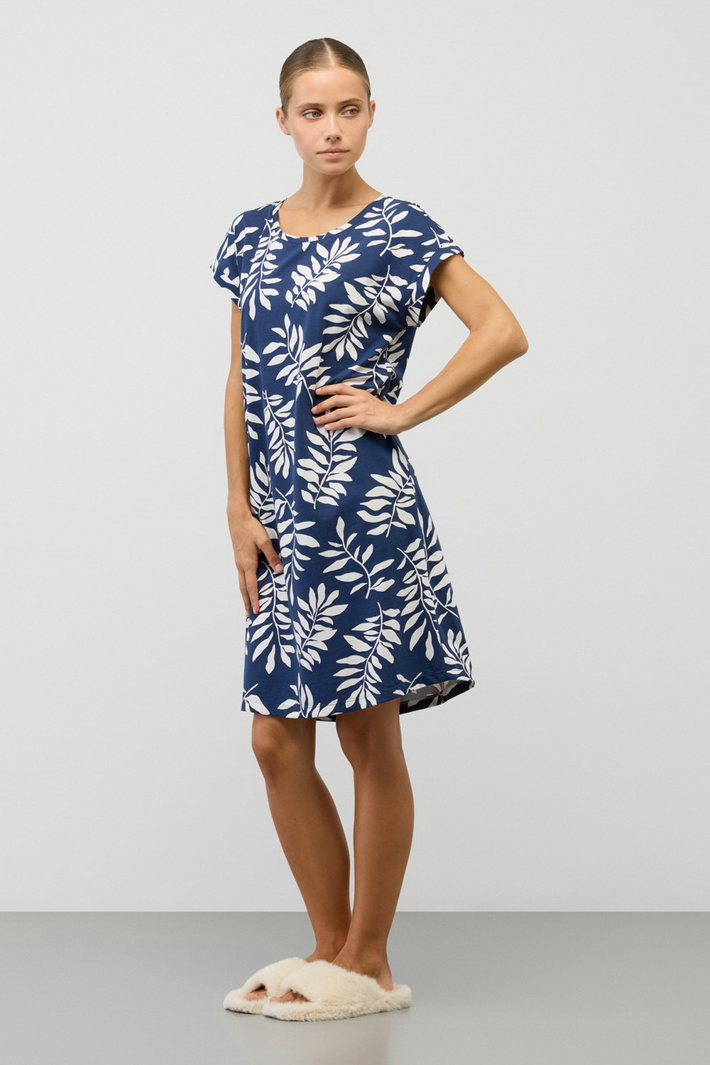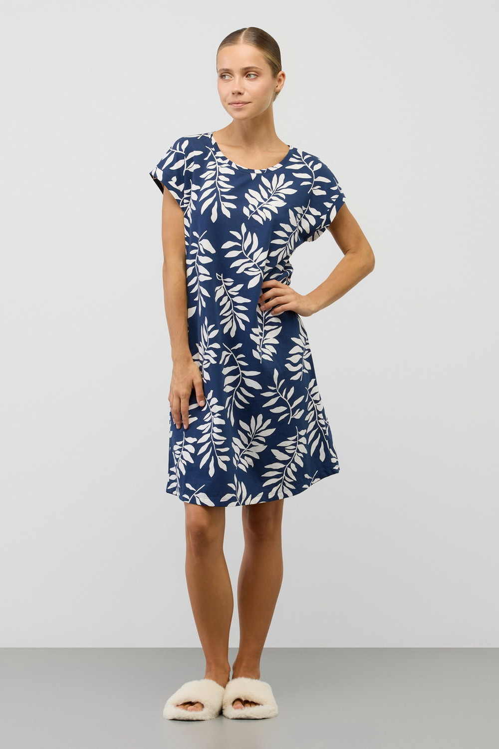 Удлиненная футболка выполнена из высококачественного 100% хлопка. Свободный крой добавляет комфорт для домашнего отдыха