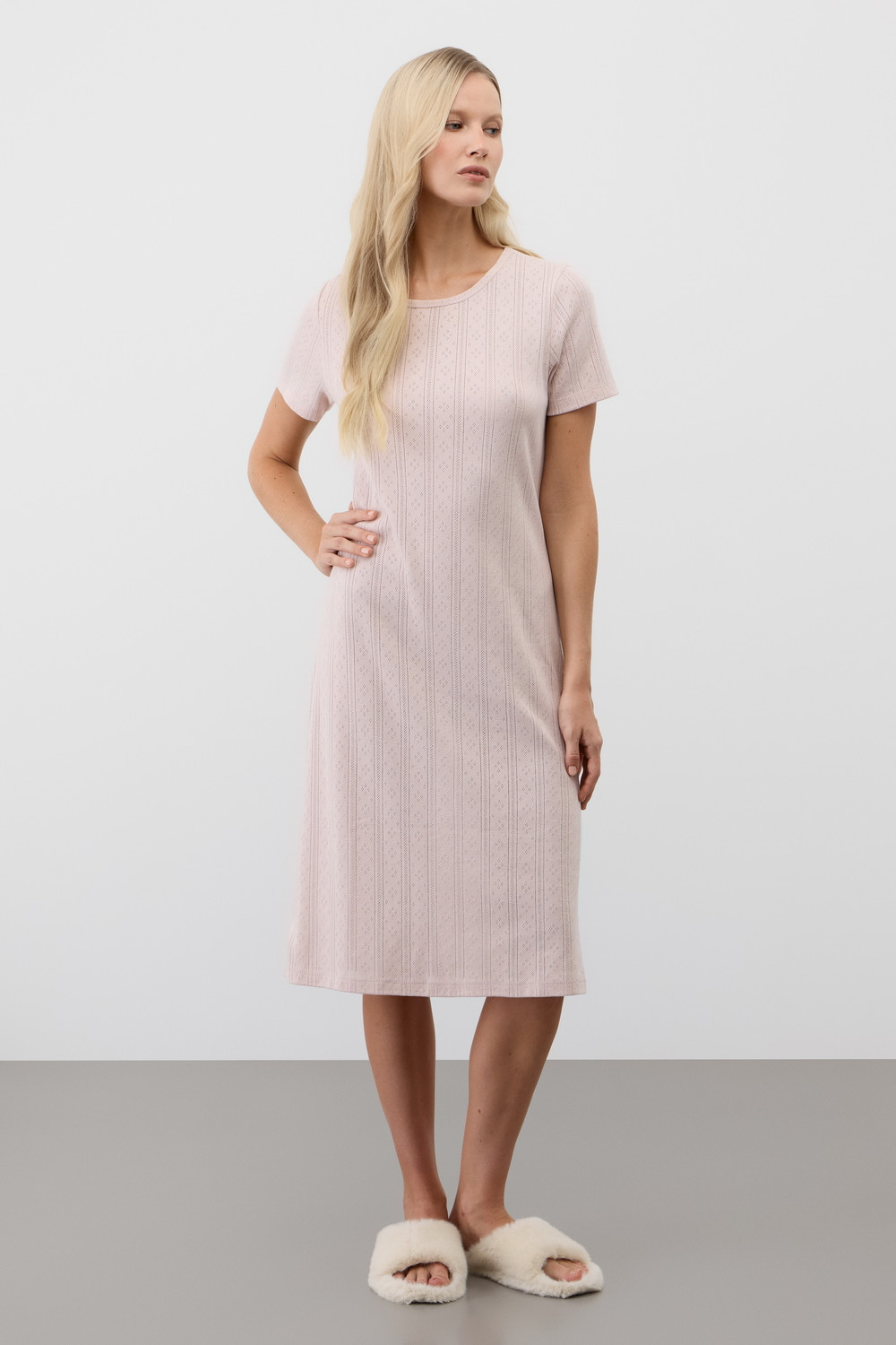 Комфортная сорочка выполнена из высококачественного ажурного хлопка. Свободный крой добавляет комфорта во время сна.