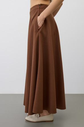 Натуральная шерсть не только приятна на ощупь, но и обладает отличными теплоизоляционными характеристиками. Крой в стиле полусолнце мягко обрисовывает силуэт, акцентируя внимание на талии.