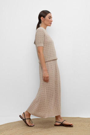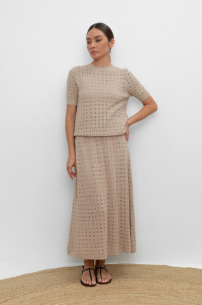 Вязаная ажурная юбка макси с подкладом. Состав 50% хлопок, 50% акрил. Благодаря акрилу в составе изделие не пилингуется.