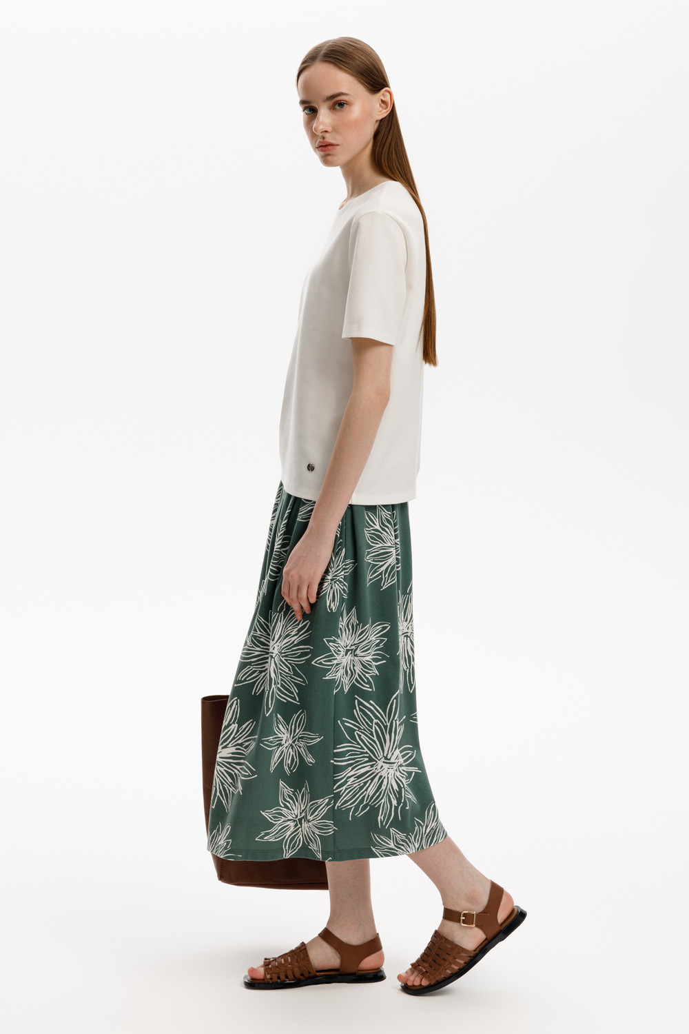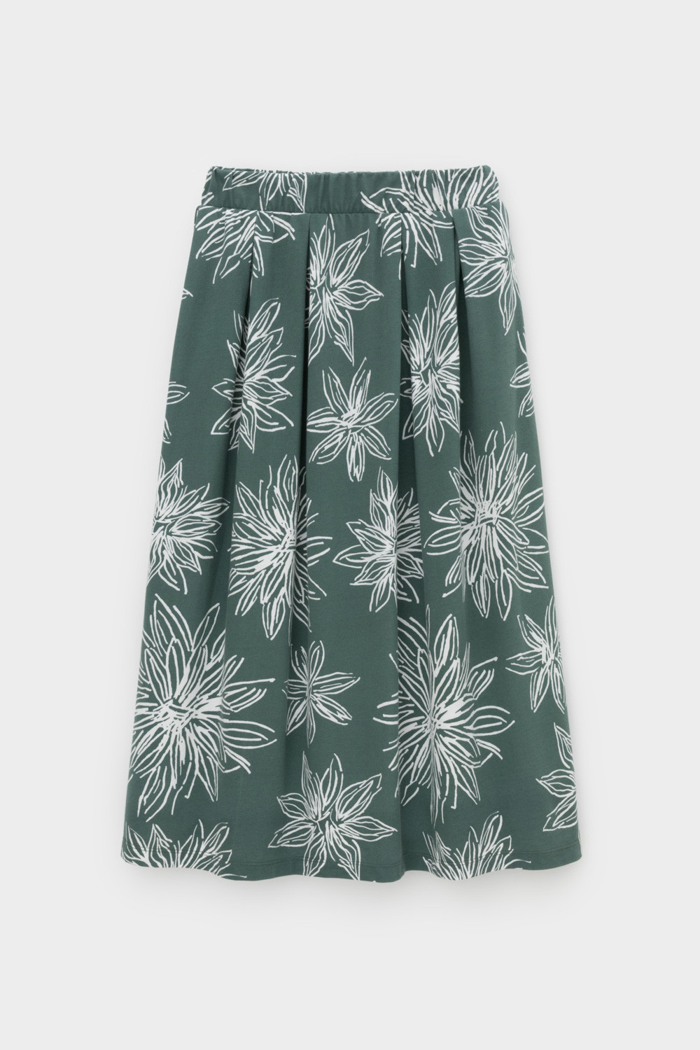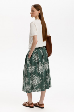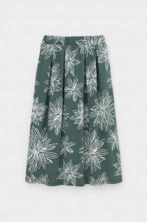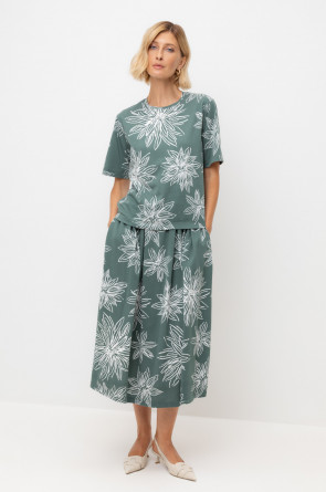 Струящаяся юбка из 100% хлопка пике с небольшой рельефной текстурой дарит ощущение комфорта и легкости. Крупные астры придают изделию летнее настроение.