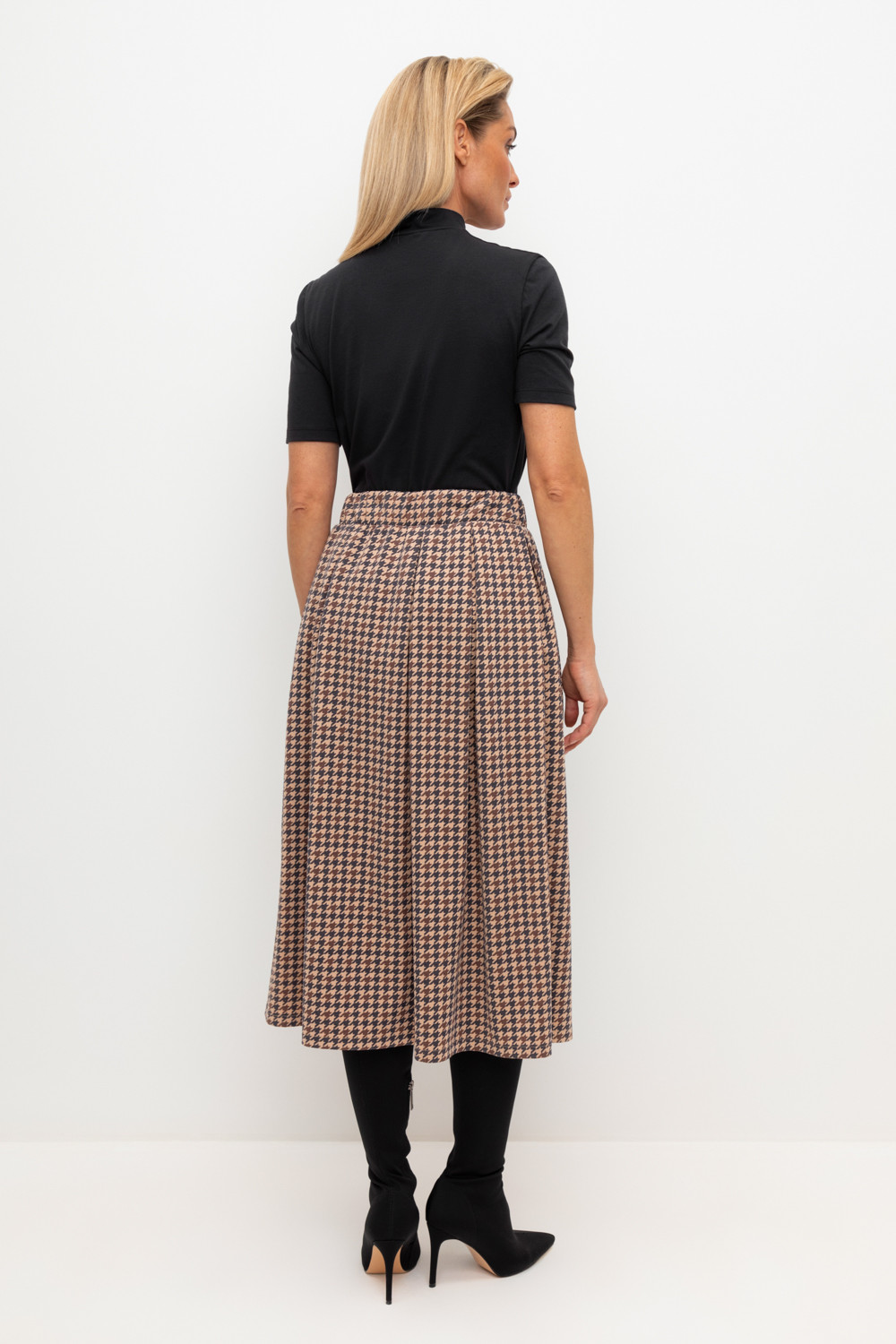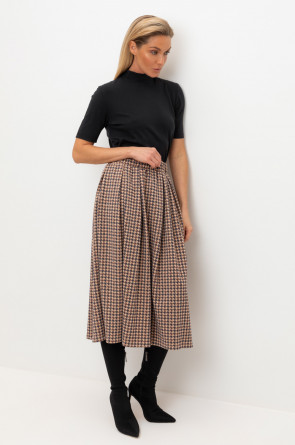 Трикотажная юбка с карманами длины миди из плотного гладкого трикотажа интерлок, произведенного из высококачественного гребенного хлопка. В составе 48% натурального хлопка и 52% полиэстера, при этом полиэстер ввязан внутрь по особой технологии и не соприкасается с кожей. Застегивается на потайную молнию. Изделие сохраняет цвет и форму после многократных стирок.