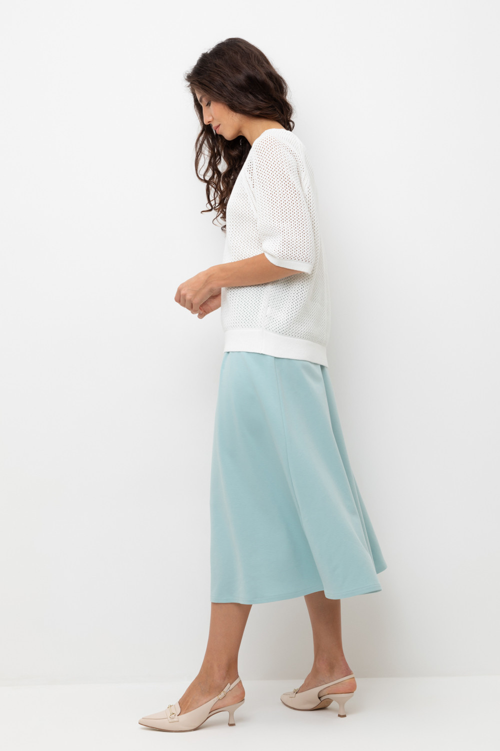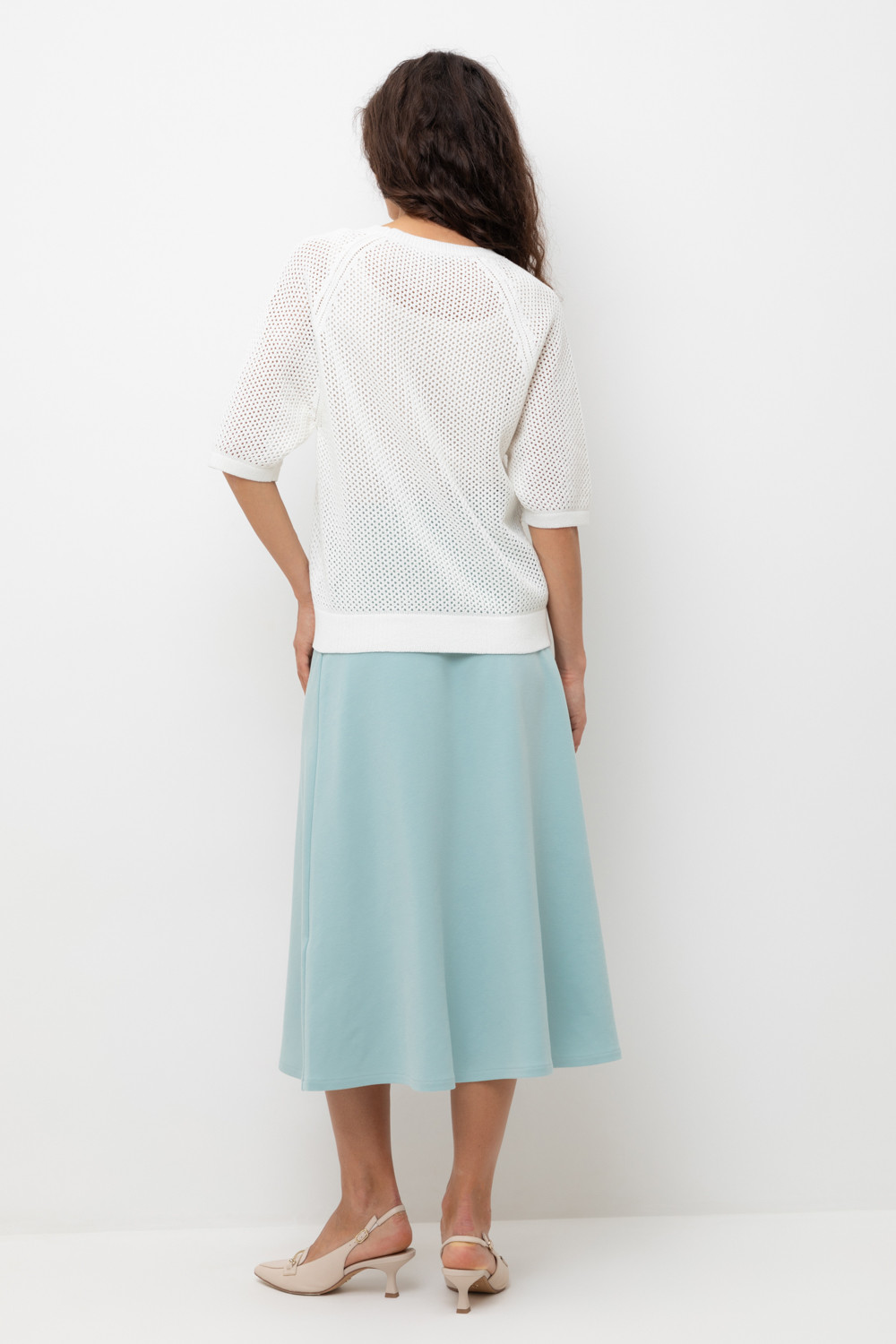 Юбка расклешенного силуэта, изготовлена из премиального трикотажного полотна DOUBLE FACE . Трикотажный пояс с эластичной резинкой внутри придает изделию функциональность и комфорт. Мягкая и струящаяся фактура полотна за счет специальной обработки soft touch дает ощущение комфорта и легкости.